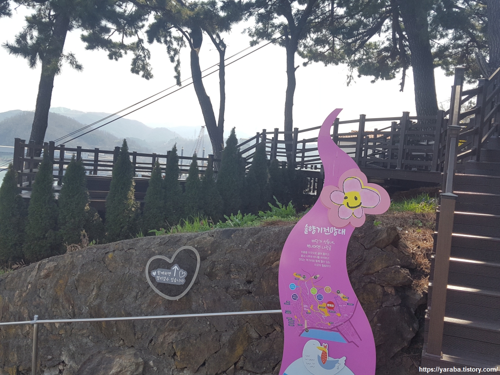 얼마간 오르막을 오르면 우람한 소나무들 사이에 있는 솔향기 전망대를 만난다. "함께하면 멀리 갈 수 있습니다"라는 문구가 옆지기와 함께하는 우리의 걸음을 격려하는 듯하다.