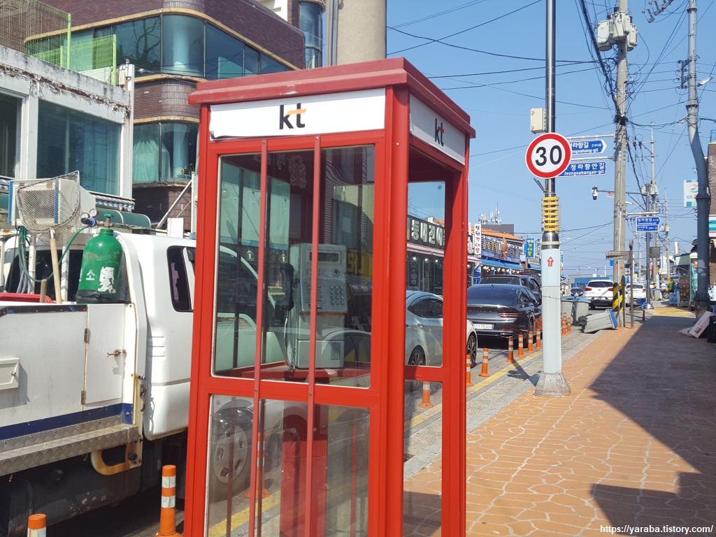정말 오랜만에 보는 공중전화 부스. 휴대폰이 없던 시절 동전으로, 전화카드로 전화하던 시절이 주마등처럼 지나간다.