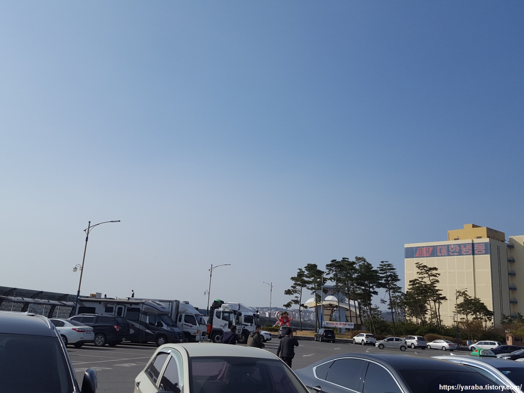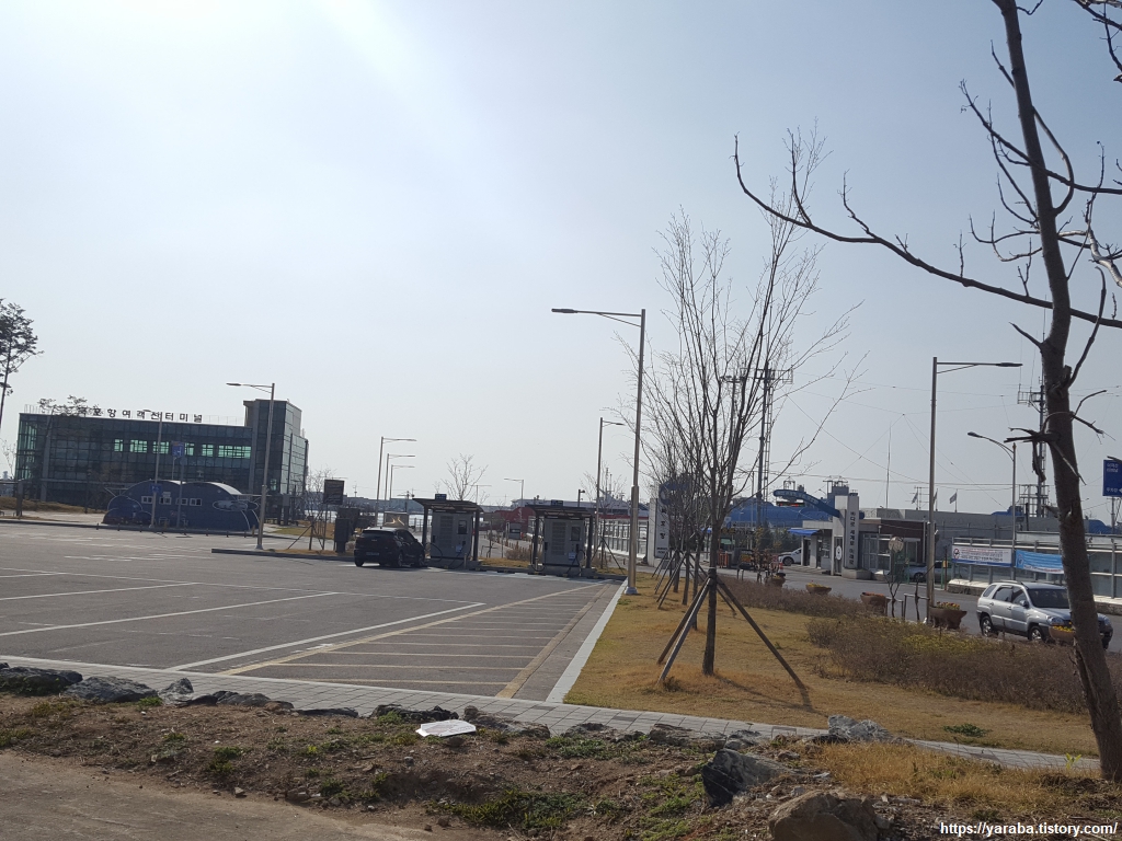 묵호항은 멀찍이 떨어져서 걸어간다. 평일에는 하루 1회, 주말에는 하루 2회 울릉도 가는 배를 탈 수 있는 묵호항 여객터미널이다. 여객선 터미널 앞으로 무료 공영 주차장을 넓게 만들어 놓아서 묵호항을 다녀가는 사람들도, 울릉도를 다녀오려는 사람들도 편리하게 사용할 수 있도록 했다.