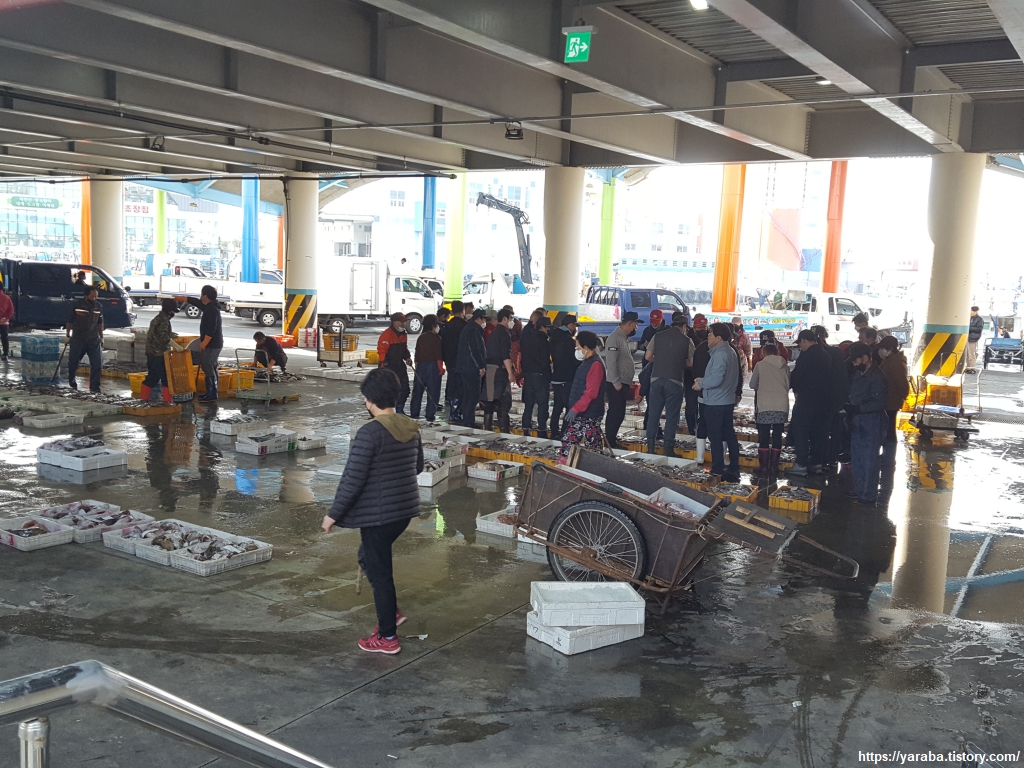 묵호항 수산물 위판장은 각종 생선을 경매하느라 활기가 넘친다. 오징어가 넘쳐나던 옛 묵호항의 그림은 그저 옛이야기일뿐이다.