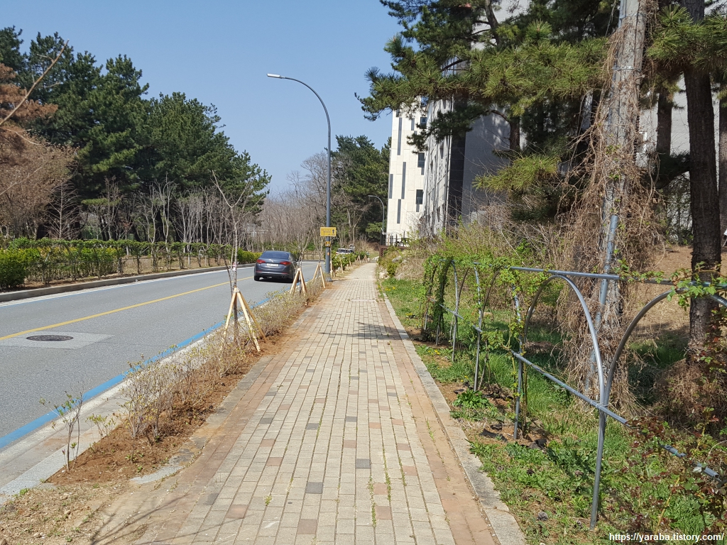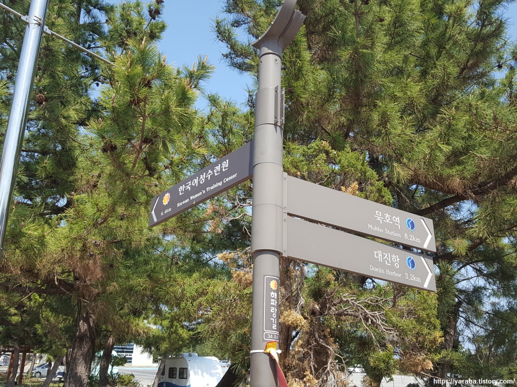 해파랑길은 엑스포 전시관과 컨벤션 센터 사이의 길로 좌회전했다가 오토 캠핑장 방면의 우회전하여 길을 이어간다.