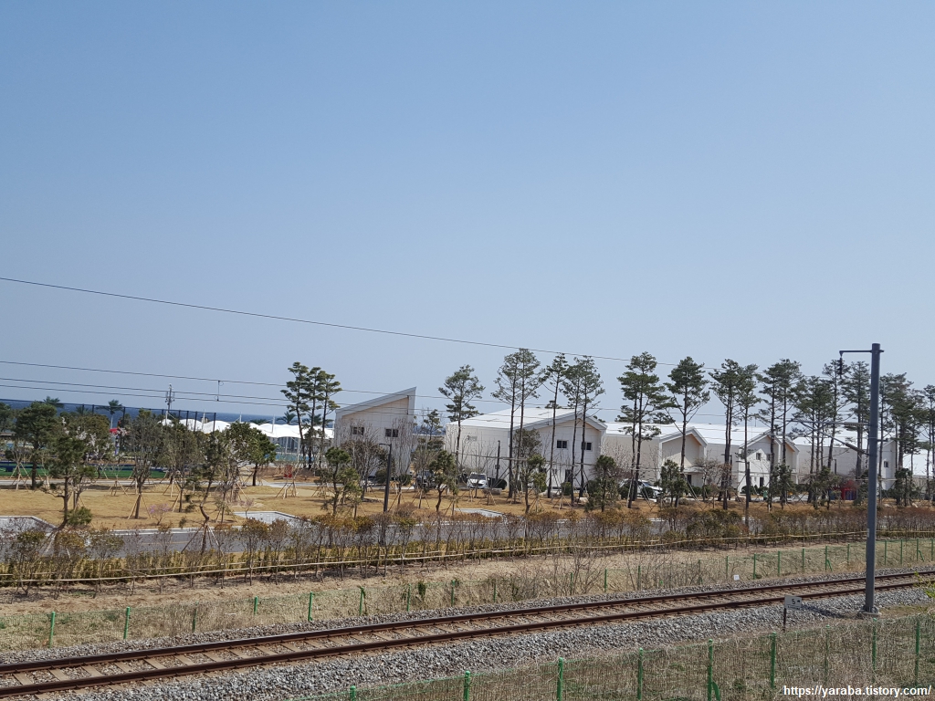 망상 해수욕장 끝자락에는 망상 오토캠핑 리조트가 자리하고 있다. 오토캠핑장에 리조트를 붙여서 고급스러운 이미지만 추가했나 싶었지만, 해파랑길을 걸으면서 살짝 구경할 수 있는 오토캠핑 리조트는 리조트라는 이름답게 오토캠핑장도 있지만 양옥의 이국스러운 마을도 있고 해변 한옥 마을도 있다. 동해시에서 관리하는 시설이다. 가격에 맞게 예약할 수 있다면 바로 앞에 전용 해변도 있고 좋겠는데! 하는 생각이 드는 곳이었다.