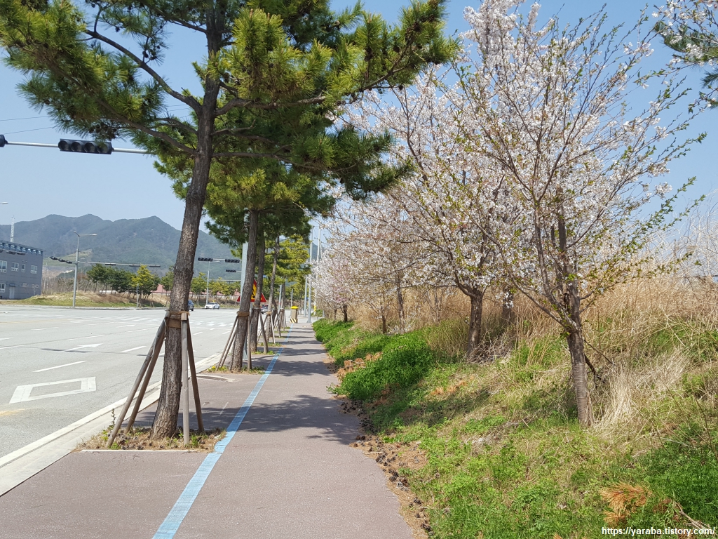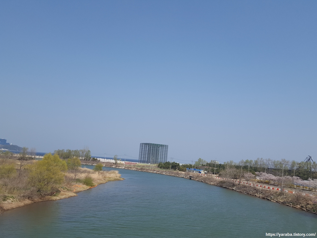 산업단지에 진입하고 주위에 공장들이 있기는 하지만 인도에 핀 벚꽃과 가로수 자리에 생명력을 뽐내고 있는 살갈퀴를 보니 산업단지라기보다는 시골 작은 공장 인근을 지나는 느낌이다. 옥계 산업단지가 위치한 이곳은 주수천과 낙풍천이 동해를 앞두고 만나는 지점으로 마치 큰 하천의 삼각주에 세워진 공업단지와 같은 느낌을 받는다. 비철금속 특화 산업단지라고 한다.