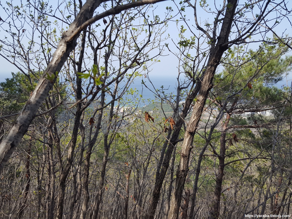 나무 숲 사이로 정동진 쪽의 풍경이 눈에 들어오기 시작한다.