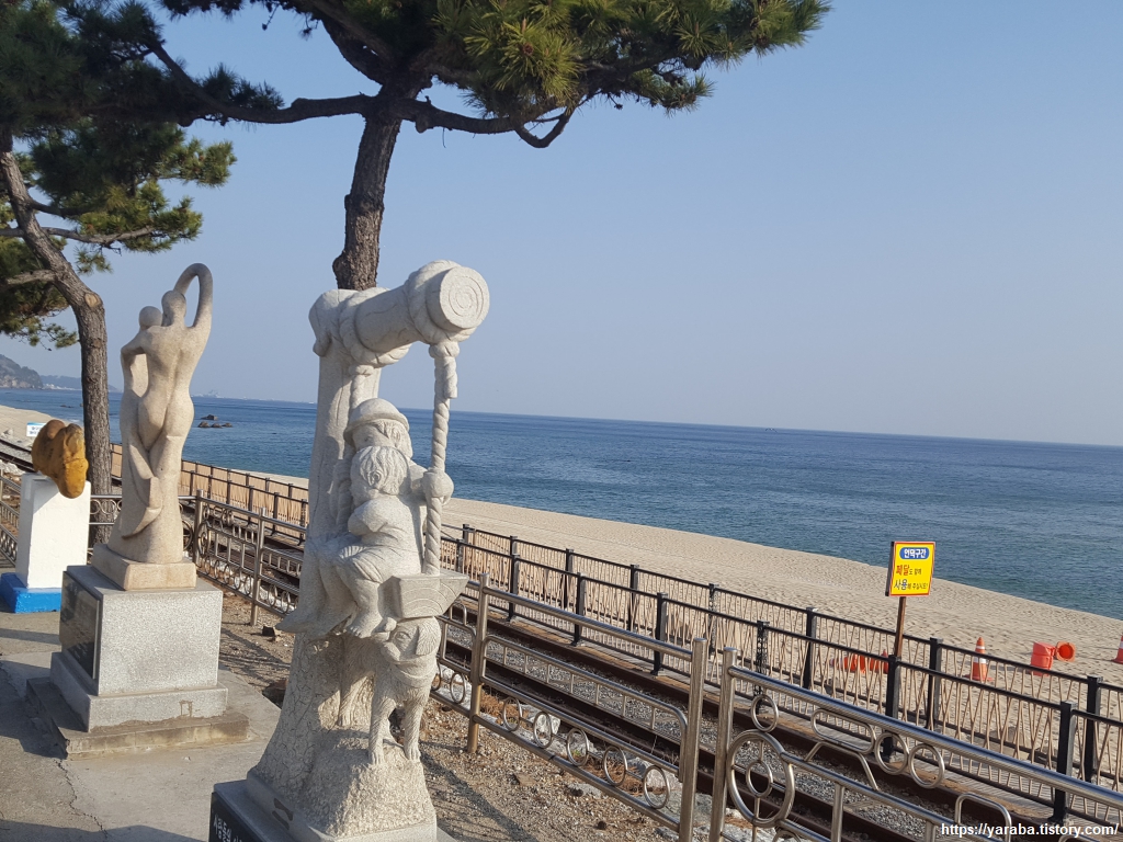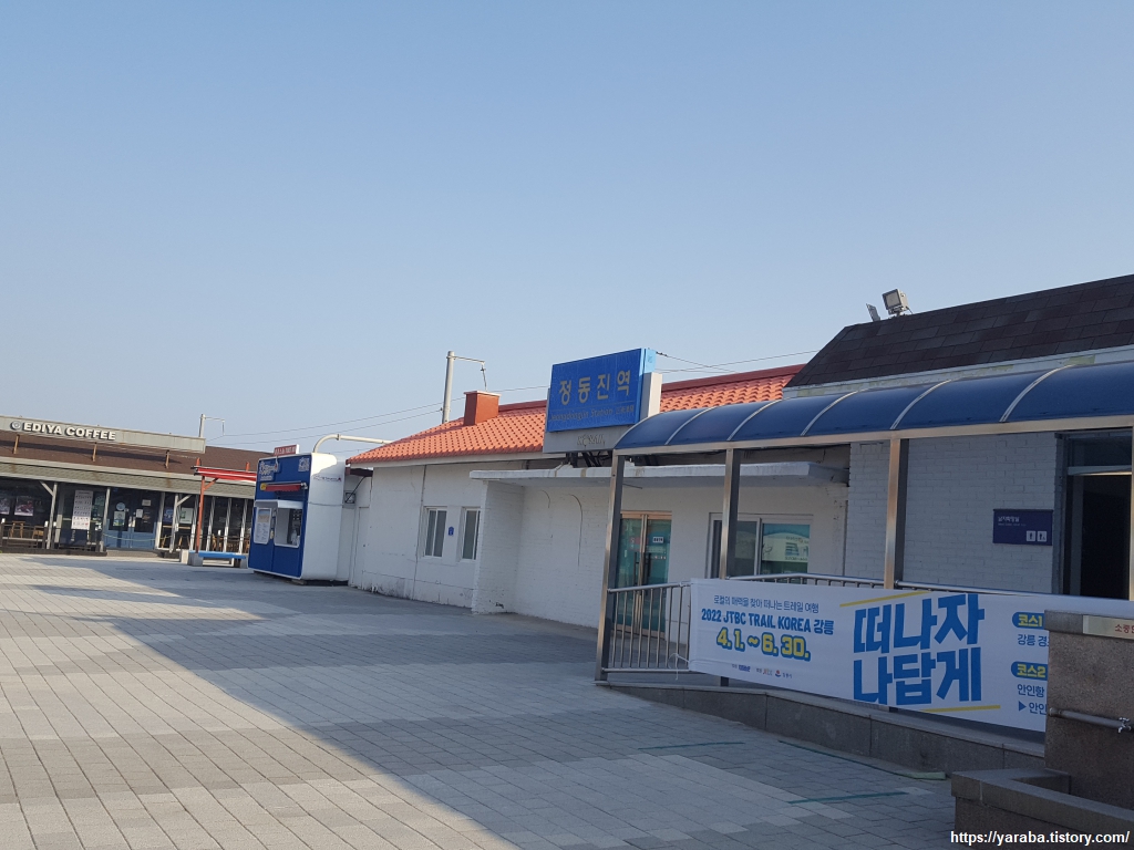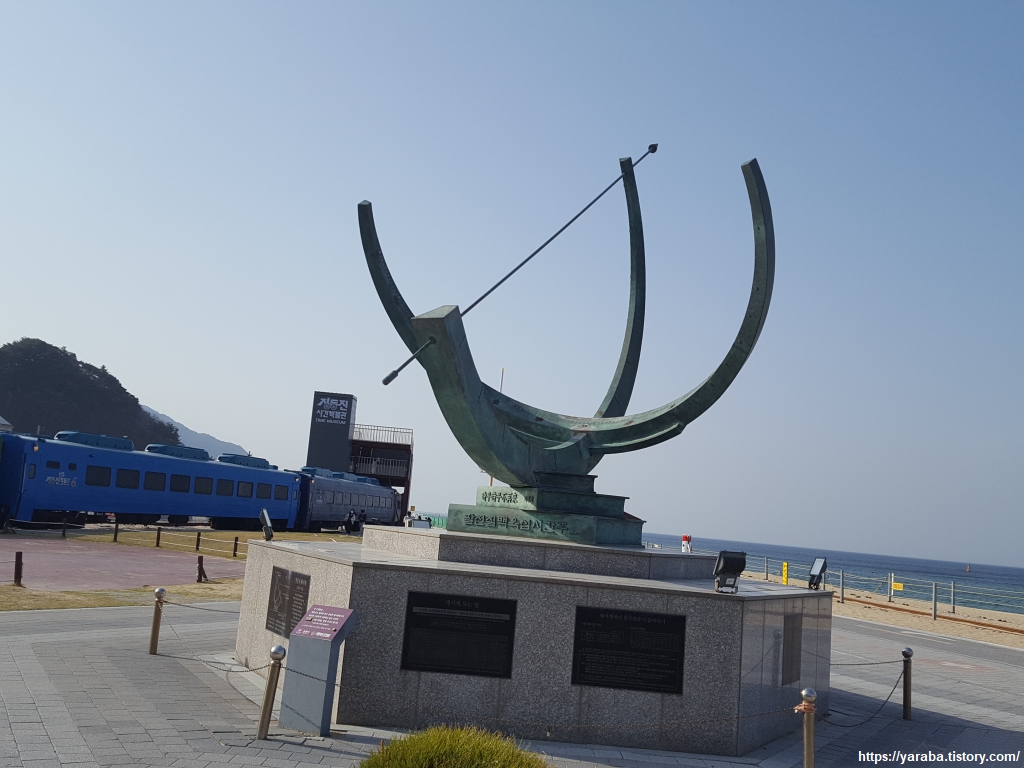 커플티 맞춰 입고 삼각대 세워서 수동 필름 카메라로 한때를 기록하던 그 장소다. 모래시계 소나무는 수많은 사람들의 사진 속에서 배경이 되었을 것이다. 새벽 일출을 보겠다고 역사 주변 모래사장은 사람들로 북적였었다. 지금은 없어졌지만 청량리역에서 밤차를 타면 일출 전에 기차가 도착해서 동해의 일출을 감상할 수 있었던 곳이었다. 추억에 푹 잠기게 하는 장소다.
