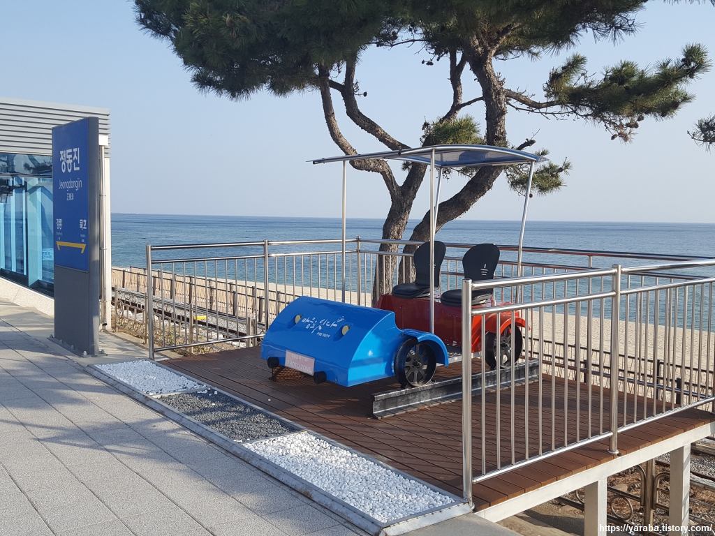 예전에는 정동진역 플랫폼에서 해안으로 바로 내려갈 수 있었지만 지금은 레일 바이크가 자연스러운 울타리가 되었다.