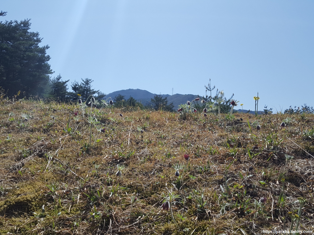 다시 산길로 올라가는 길. 언덕에 핀 할미꽃이 발걸음을 붙잡는다. 잎 모양은 쑥을 닮았지만 굽은 허리의 고운 할머니를 연상시키는 꽃이 올라오면 그 존재를 명확하게 알려준다. 무덤처럼 양지바른 곳에서 자라는 여러해살이 풀이다.