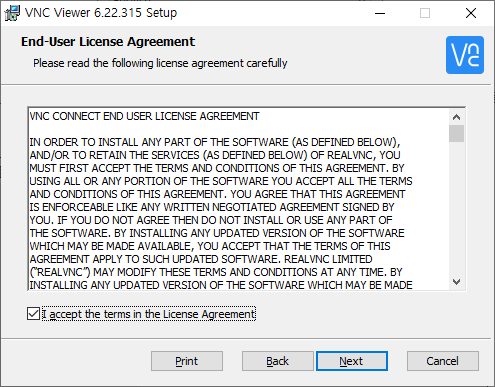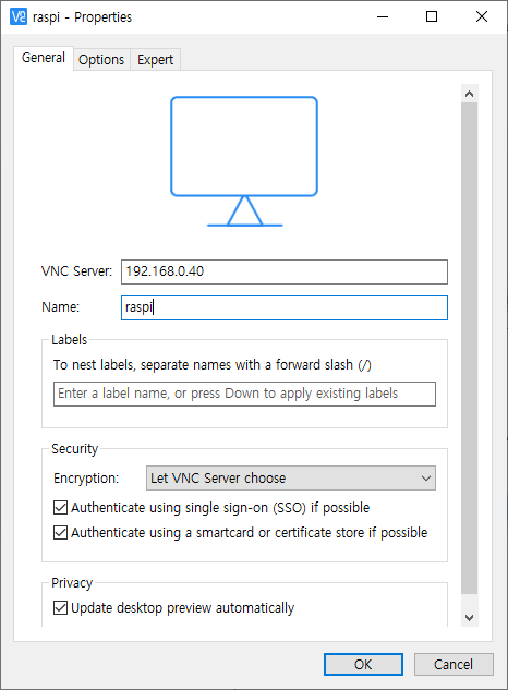 이제 https://www.realvnc.com/en/connect/download/viewer/에서 VNC 뷰어를 다운로드하여 설치하고 접속하면 된다.