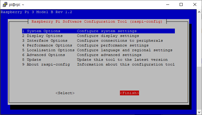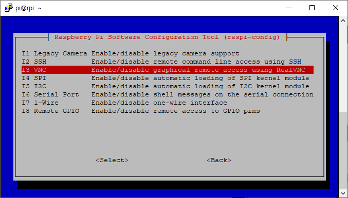 필요한 설정을 위해서는 먼저 터미널로 접속하거나 ssh로 접속해야 한다. 위의 그림은 ssh로 접속하여 sudo raspi-config를 입력한 것이다.