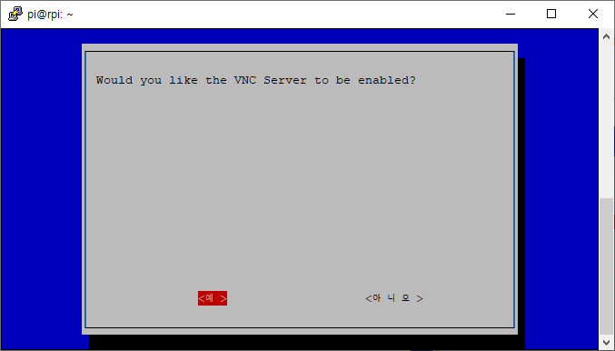 VNC 서버 가동 여부에 [예]로 엔터를 누른다.