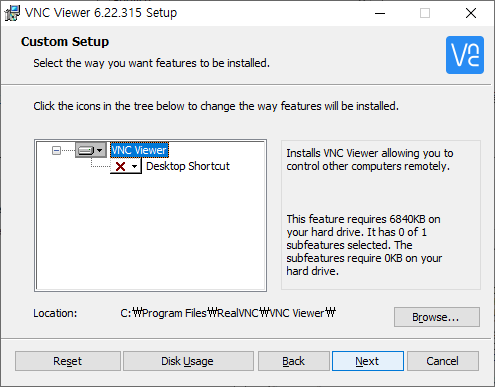 방향키로 VNC를 선택하고 엔터를 누른다.