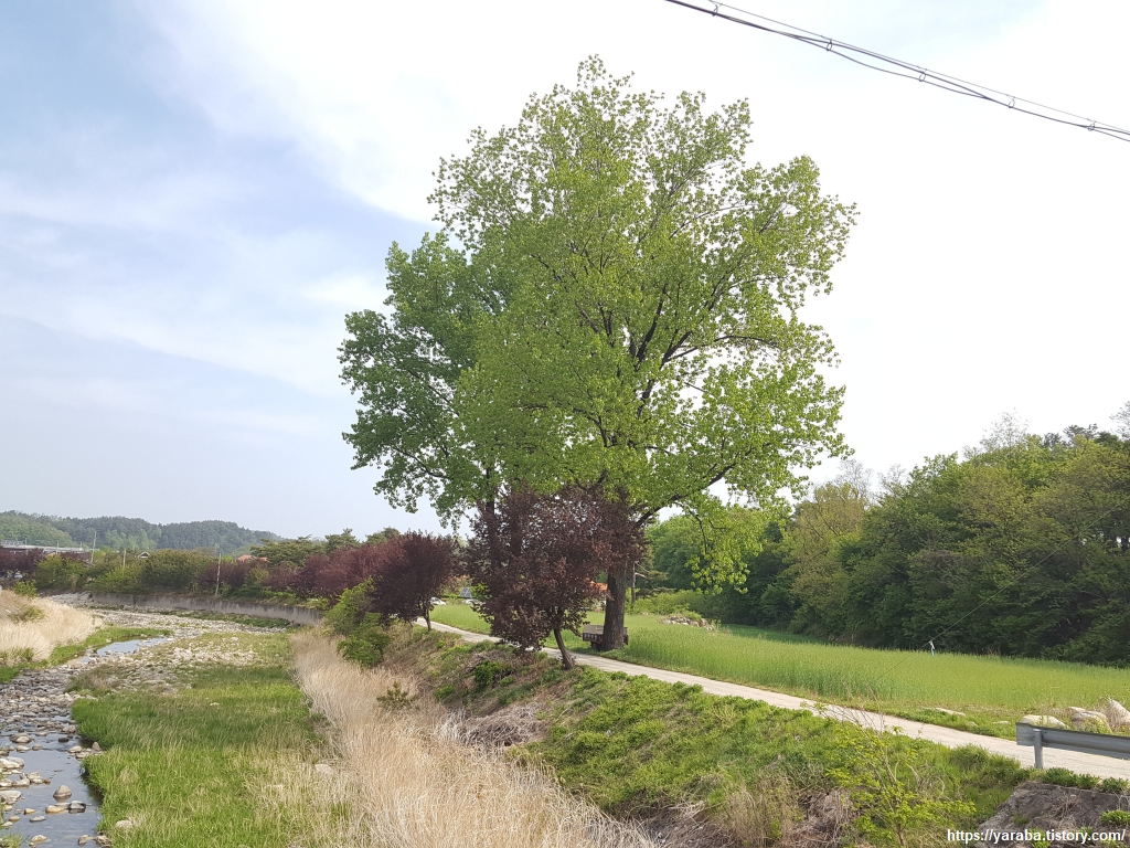 한 종류의 나무가 가지런히 심어진 산책로가 아니지만 큰 나무, 작은 나무, 불그스름한 나무, 푸른 나무, 하천과 들판이 어우러진 환상적인 산책길로 들어선다.