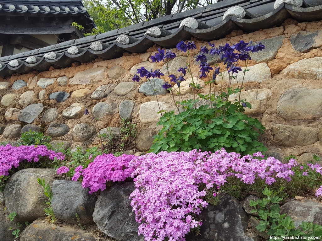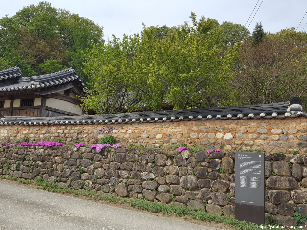 길은 강릉 만성 고택을 지나 마을길 안으로 들어간다. 만성 고택은 조선 말기에 지어진 건물로 강원도 유형문화재로 관리하고 있다. 고택의 돌담 아래 작은 화단에서 화려한 꽃들이 봄을 노래하고 있다.