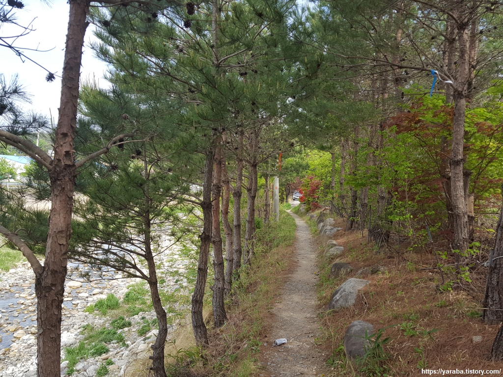 아기자기한 소나무 사이 오솔길도 와우! 하는 감탄을 터지게 한다. 소나무 사이로 바라보는 어단천은 물이 풍성하게 흐르는 하천은 아니다. 그렇지만, 크고 작은 돌들 사이로 흘러가며 수많은 생명을 살려내는 작은 하천이 동해에 이를 때면 수많은 생명을 품었던 살아있는 하천답게 동해 바다에도 생기를 불어넣을 것이다.