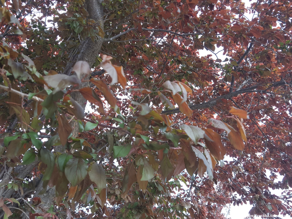 이번에는 온통 붉은 옷을 입은 나무다. 해파랑길 빨간색 리본보다도 훨씬 짙은, 진한 자줏빛 색깔을 가졌다. 자엽 자두나무이다.