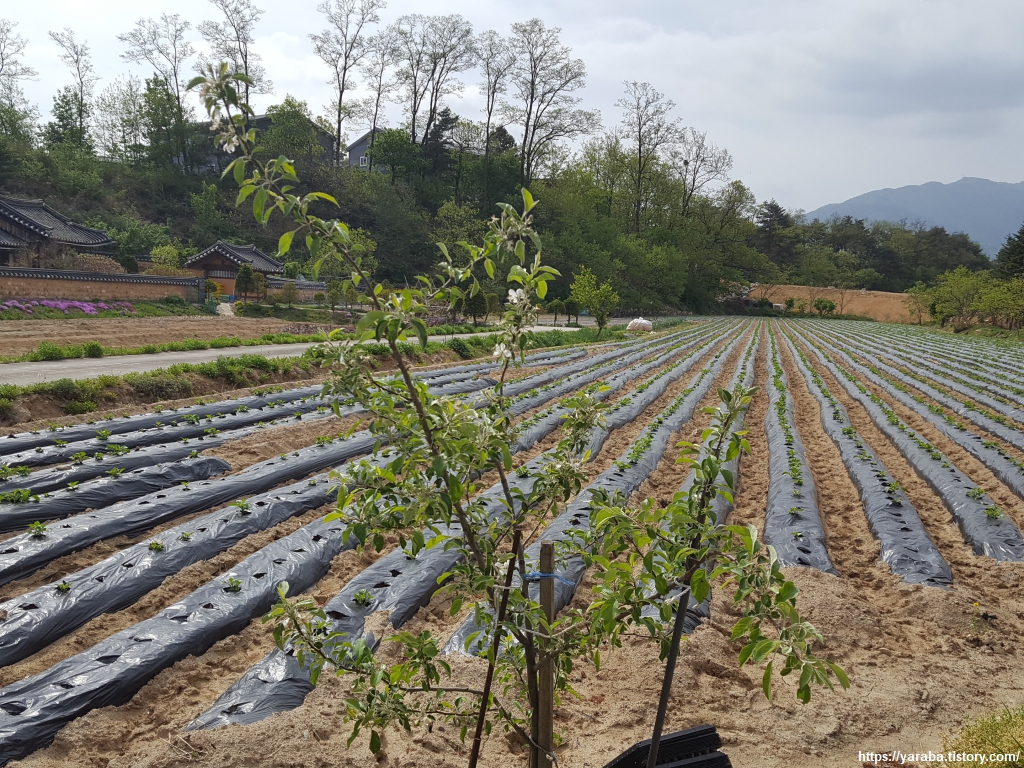 부지런한 농부가 감자를 심어 놓은 밭 가장자리에는 키 작은 사과나무가 하얀 꽃을 피웠다. 과수원의 나무들은 때가 되면 가지치기, 꽃 속아주기, 농약 세례를 비롯한 다양한 관리와 대접을 받지만, 농부가 장에 갔다가 묘목 한그루 사서 밭 가장자리에 심어 놓았을 이런 나무는 대접은 없으나 최고의 자유를 누리지 않을까?