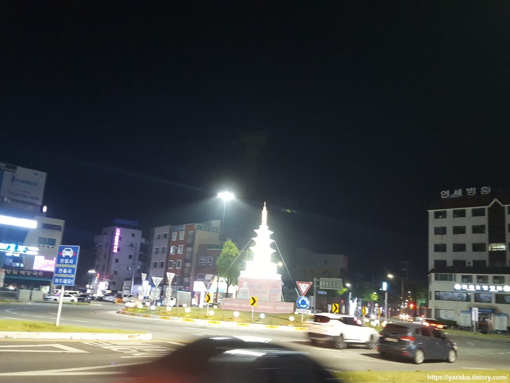 강릉역 앞 교차로에는 부처님 오신 날을 맞이하여 세워둔 봉축탑이 불을 밝히고 있다. 꽃과 나무들로 봄이 오는구나라고 느꼈다면, 매년 봄이 구나! 하는 생각을 하게 하는 인공물이 있다면 부처님 오신 날을 맞이하여 거리에 세워둔 조형물과 연등들이 아닌가 싶다. 예약해놓은 시내 숙소로 걸어서 이동하고 내일 아침 시내버스를 타고 오독떼기 전수관으로 이동한다.