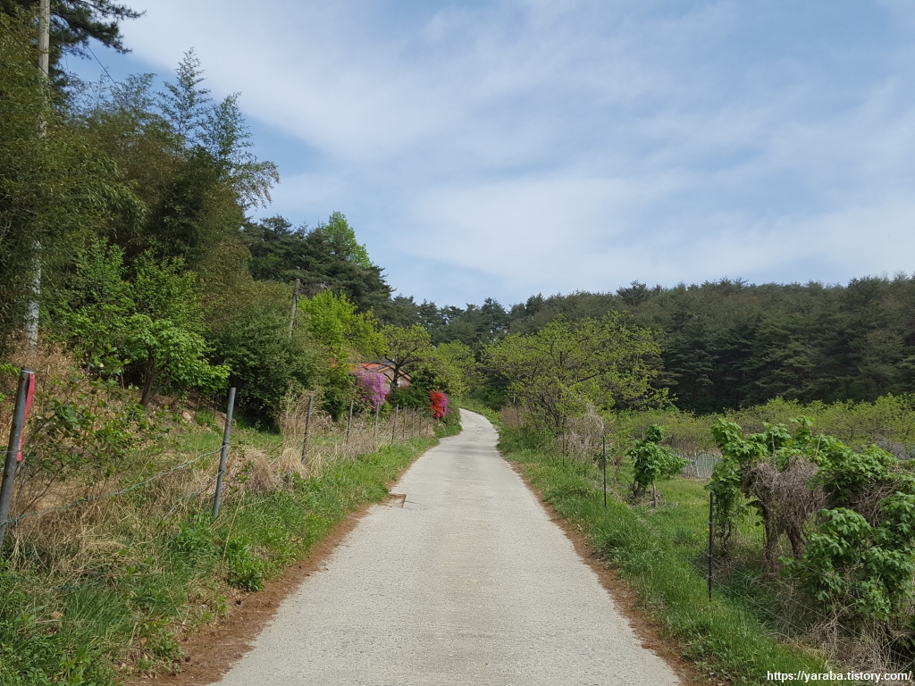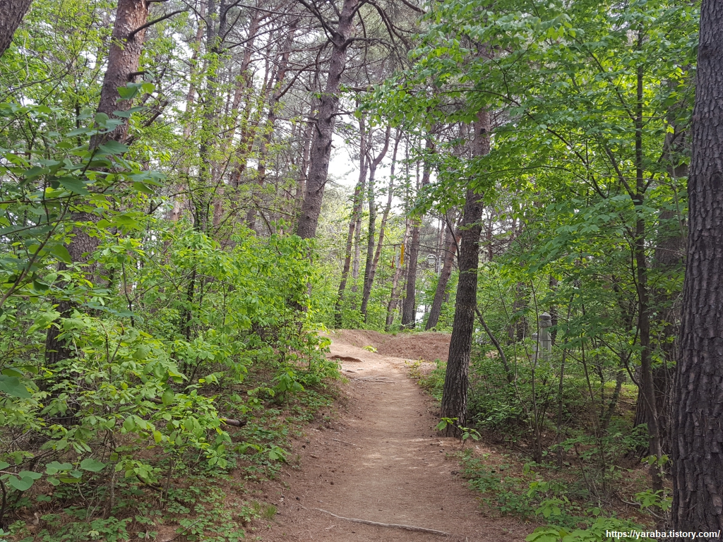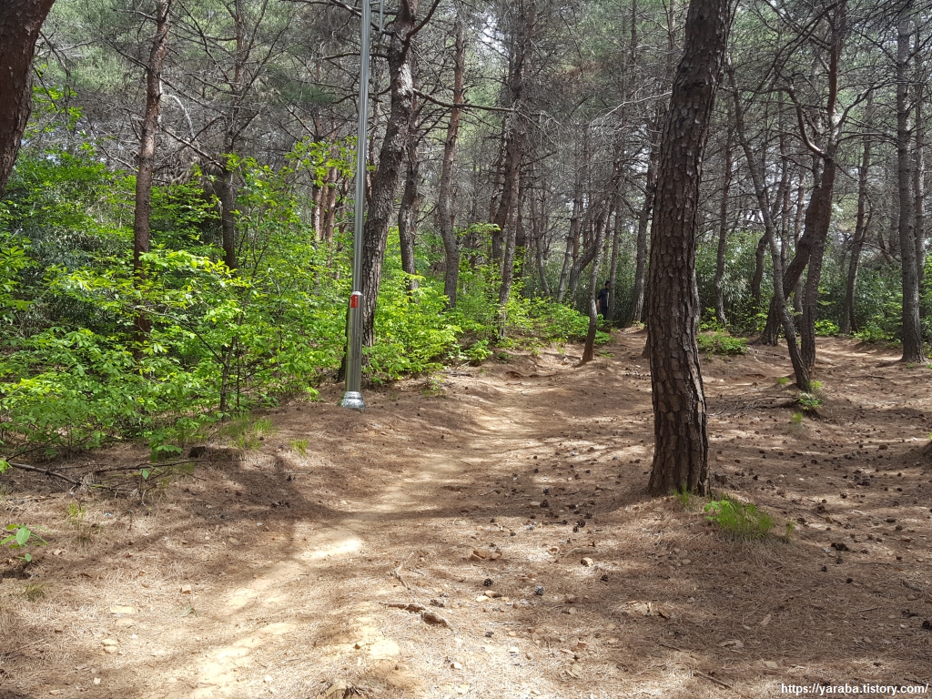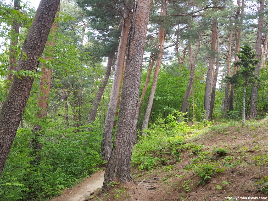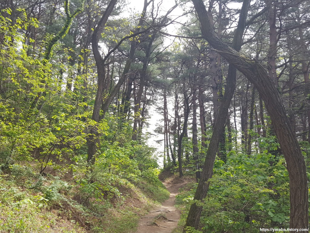 쭉쭉 뻗은 솔숲 사이로 걷는 최고의 산책길을 걷는다. 봄이지만 강력한 햇빛을 그대로 받으면 조금은 힘들다 싶은데 이런 숲길은 정말 좋다.
