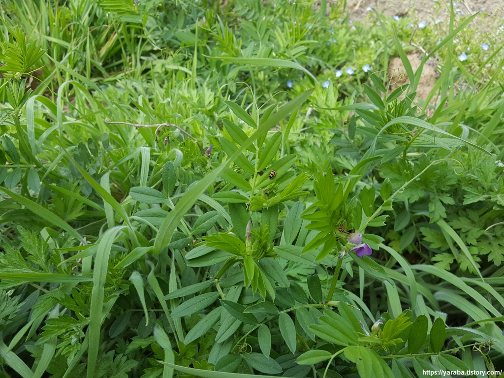 소를 살찌운다는 살갈퀴의 보라색 꽃이 피었다. 우리나라의 요즘 소들은 이런 싱싱하고 맛있는 풀 대신 바다 건너온 조사료를 먹는 것이 현실이지만, 먹일 수 있는 범위 내에서 소를 키우면서 풀 베어 먹이고, 소들이 배설한 똥은 다시 땅으로 보내는 그런 자연 순환적인 목축은 과연 일반화될 수 없는 것인가? 공장식 목축만이 살길인가? 하는 생각을 잠시 해본다.