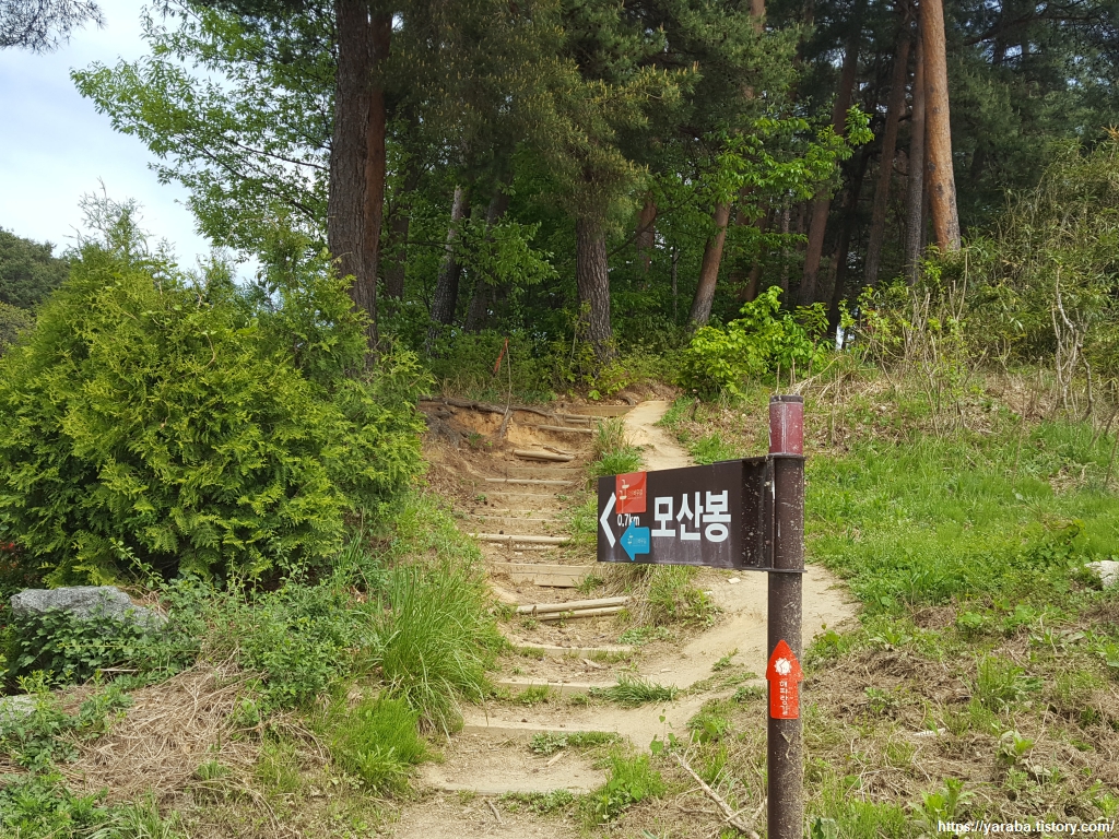 모산 초등학교 앞에서 모산로 도로로 끊어진 길은 이내 모산봉으로 이어진다.