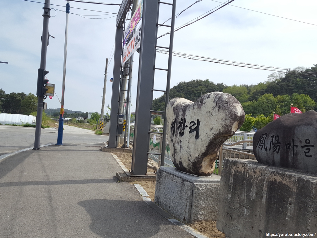 여찬리라는 마을 이름은 일제 강점기 때부터이고 그 이전에는 봉양 마을이라고 불렀다고 한다. 봉황이 좋아한다는 오동나무가 많았다고 붙여진 이름이라고 한다. 커다란 잎사귀를 가진 오동나무는 지금 세대의 사람들에게는 익숙하지 않은 나무이지만, 예전에는 딸이 태어나면 혼수를 위해서 오동나무를 심었다는 이야기를 들은 기억이 있다. 일제 잔재라는 이야기도 있다. 가구의 서랍을 오동나무로 했다고 하면 그나마 좋은 재료를 썼구나 하는 생각을 하기도 했었다. 실제로 오동나무는 잎이 큰 만큼 성장이 빨라서 15-20년이면 쓸만한 재목으로 사용할 수 있다고 한다. 그만큼 나무가 무른 것이 약점일 수는 있지만 오동나무 관을 최고로 쳐주고, 거문고나 가야금 같은 전통 악기 또한 오동나무로 만드니 그 가치는 다른 나무에 비할바가 아니다. 안타까운 것은 우리나라 관 제작에 사용하는 오동나무 대부분은 중국에서 수입한다고 한다. 여찬리와 봉양 마을 마을비 뒤로 있는 다리의 이름도 오동교이다. 길은 오동교 앞을 가로질러 직진한다.