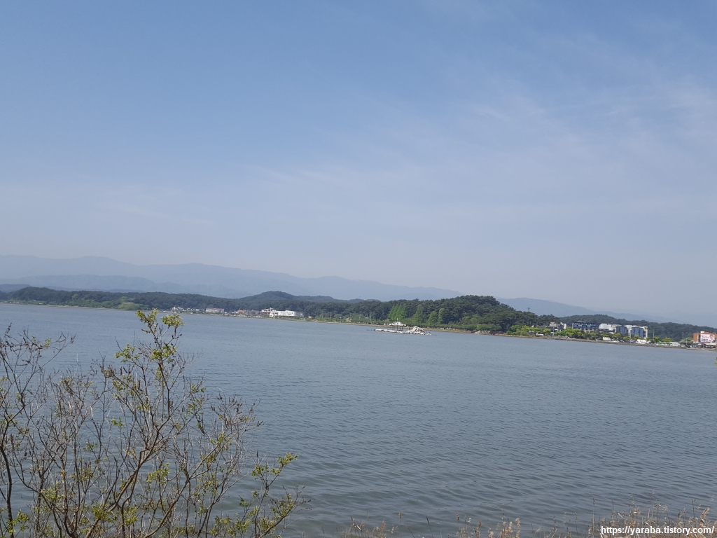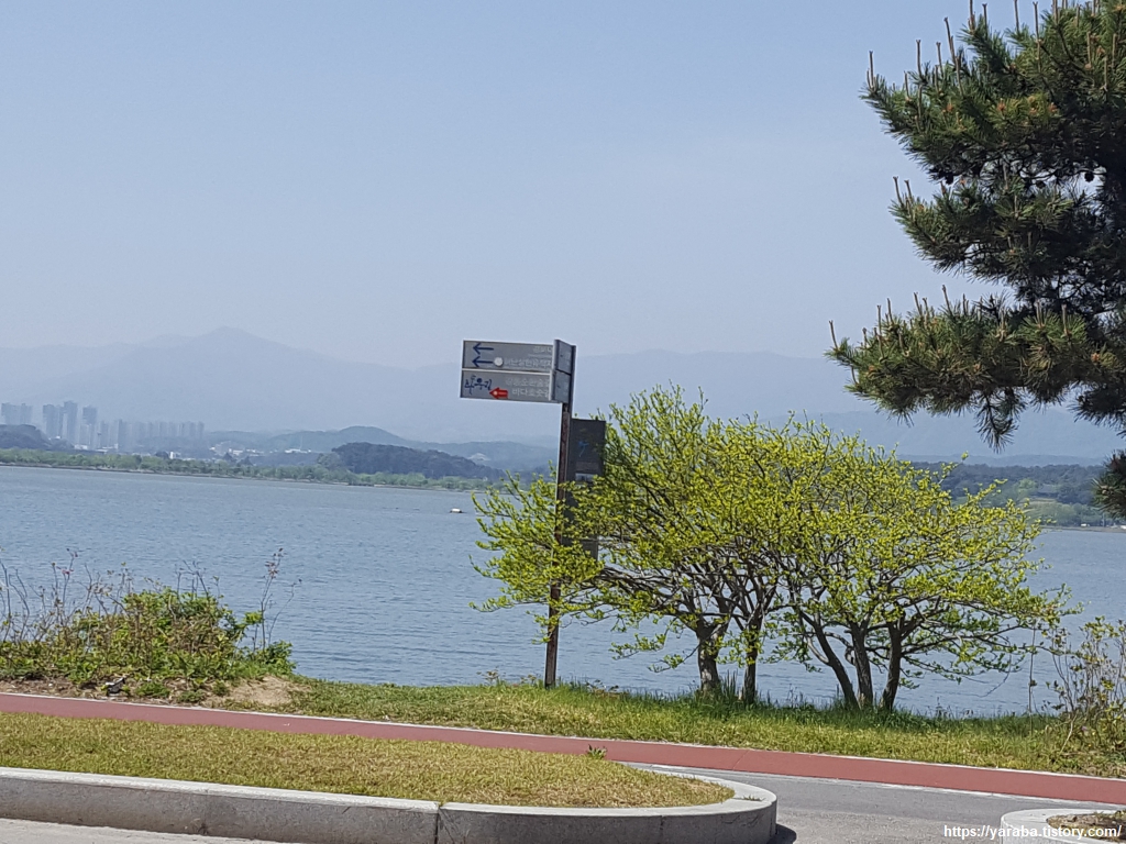 해안로 도로를 만나면 횡단보도로 도로를 가로질러 좌회전하여 경포호 산책길을 걷기 시작한다. 이제 경포호 걷기를 본격적으로 시작하는 것이다. 소나무 숲길을 걷다가 뻥 뚫린 호수 주변을 정오의 태양을 맞으며 걷기란 좀처럼 쉽지 않다. 이른 아침에는 쌀쌀하고 정오에는 헉헉 거리는 더위와 싸우는 4월의 걷기는 히말라야 하산길의 걷기를 추억케 한다.