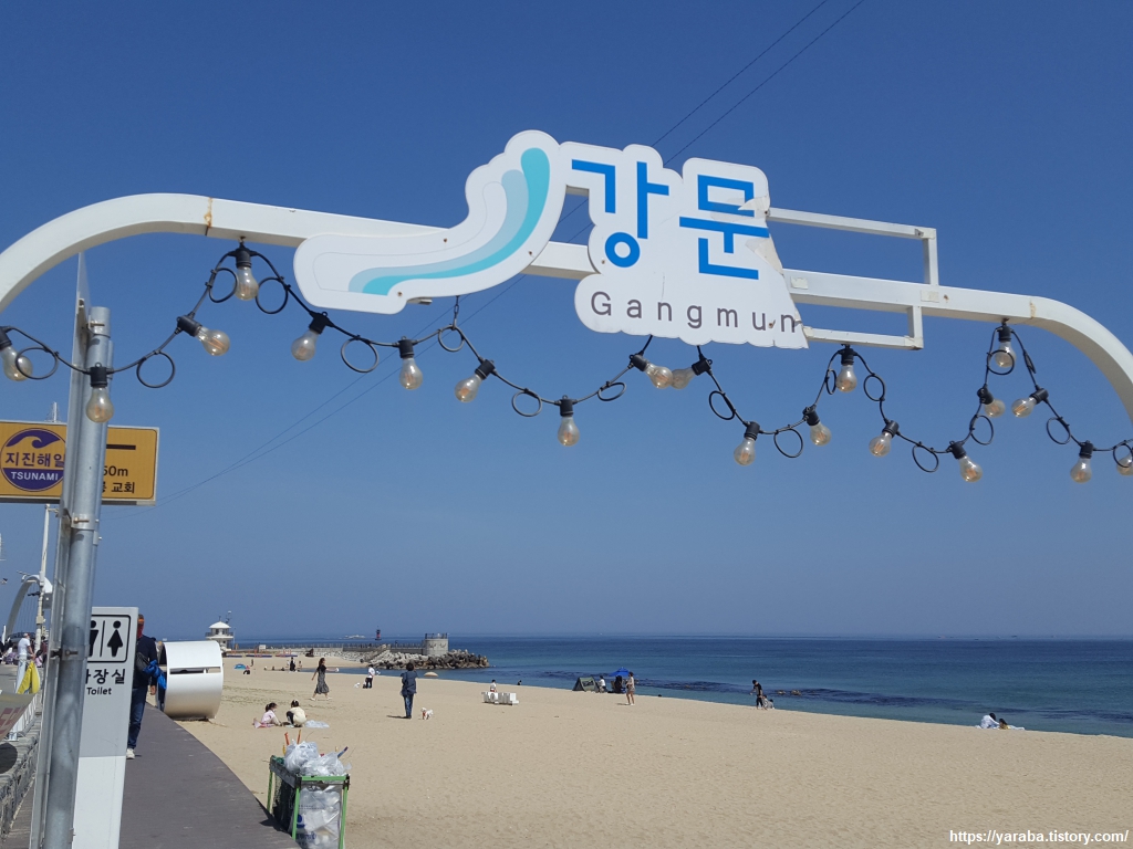 강문 해변에 도착했다. 강문동은 이름 그대로 강의 문, 강물이 드나드는 어귀란 의미로 경포 하구에서 초당동과 나란히 붙어 있다.
