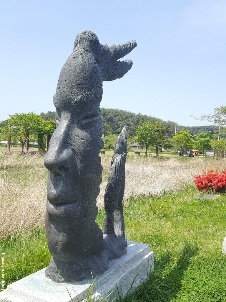 홍장암이라는 강원도 안렴사 박신과 기생 홍장의 러브스토리가 있는 바위에 대한 안내판이 있었다. 처음에는 뭘 모르고 호수 중앙에 있는 바위를 가리키며 저게 홍장암인가? 하며 옆지기와 수다를 떨고 있었는데 근처에서 쉬고 있는 한 사람이 저건 그 바위가 아니란다. 오잉! 무슨 망신! 새바위를 홍장암이라 했으니, 무식하면 용감하다고 근처에 보이는 특이한 바위를 가리키다가 망신을 당한 것이다. 홍장암은 호숫가에 있는 바위다. 재미있는 것은 이 러브 스토리를 해안으로 이동하며 조각과 글을 읽으면 책 한 권 읽듯 이야기 한편을 뚝딱 읽게 된다는 것이다.