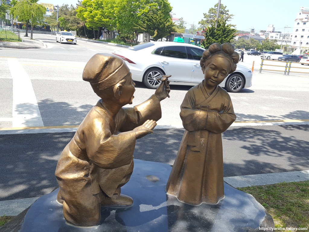 김문기 작가의 고독한 동행이라는 작품. 경호포 조각 로드의 여러 작품 중에서 도무지 이해가 어려웠던 작품 중의 하나다.