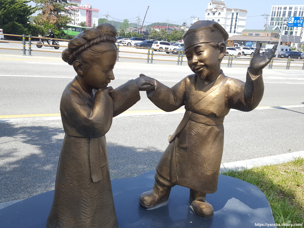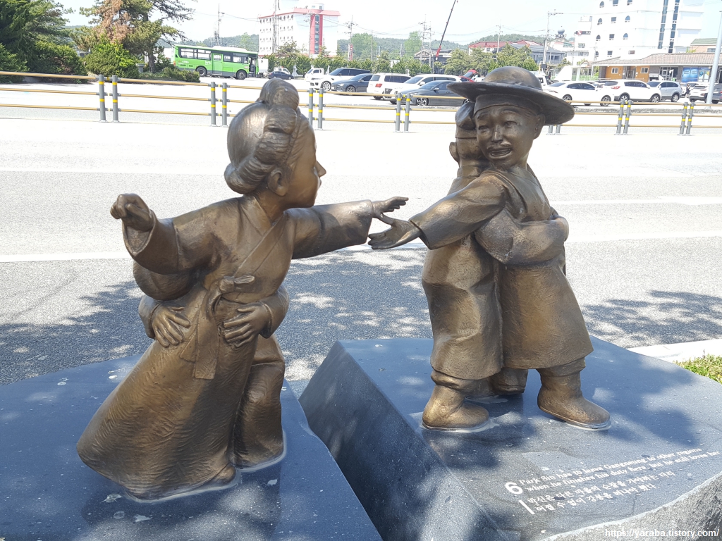 "11, 홍장과 박신이 행복한 여생을 보냈다고 한다" 아슬아슬한 중간 전개에 비하면 평탄한 결말이지만 지역에 있는 한 편의 러브 스토리를 조각과 글로 대하니 이 또한 재미있는 방법이 아닌가 싶다. 아주 느릿느릿 걸으면서 한 편의 동화책을 읽는 해파랑길 바다 옆 방호벽에 그려있던 어린 왕자 이야기도 떠오른다.