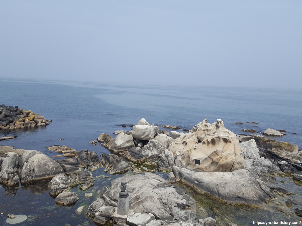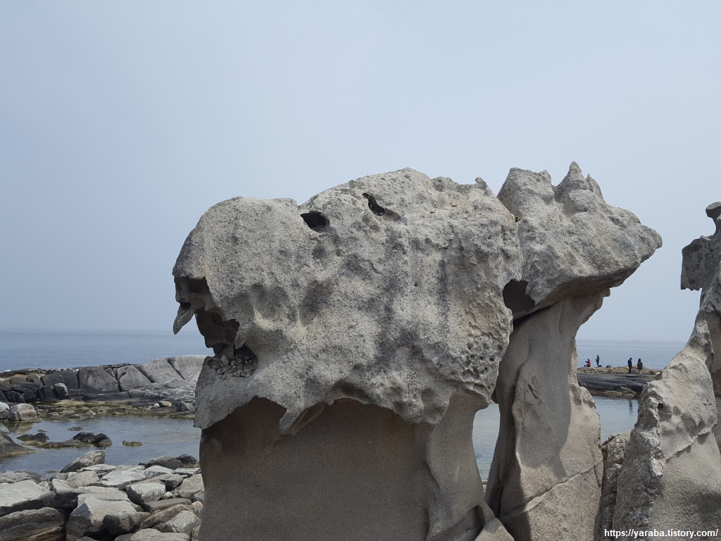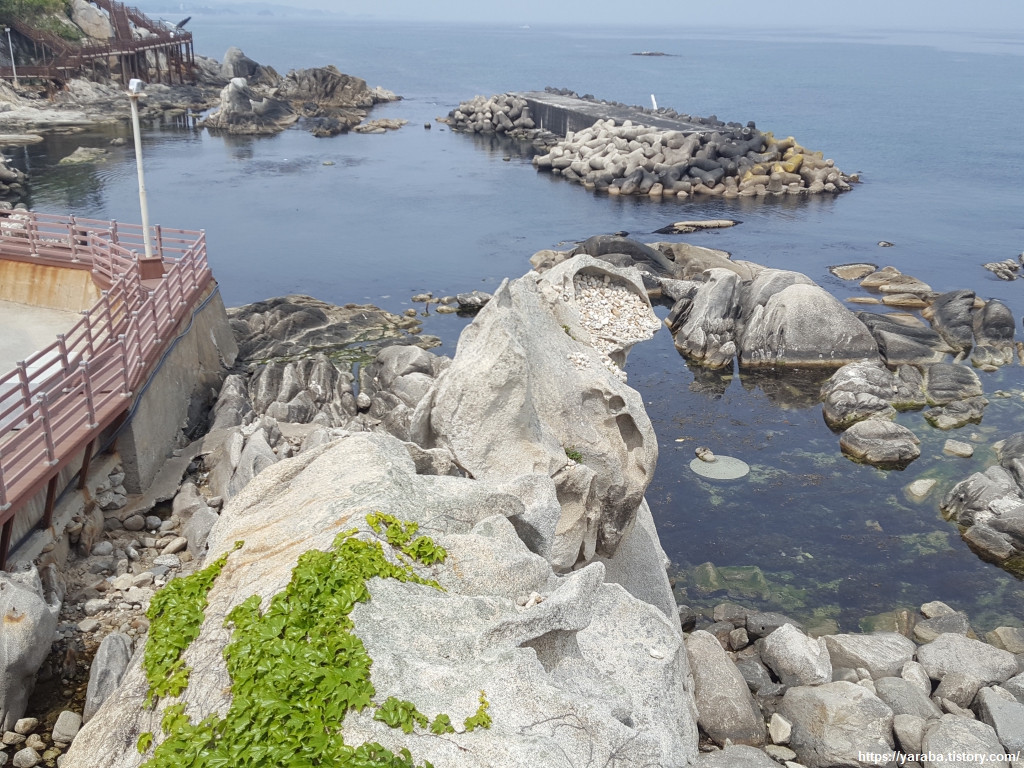 해안은 온통 기암괴석들의 전시장을 방불케 한다. 가끔씩 보이는 인공 구조물들이 오히려 경관을 해치는 형국이다.