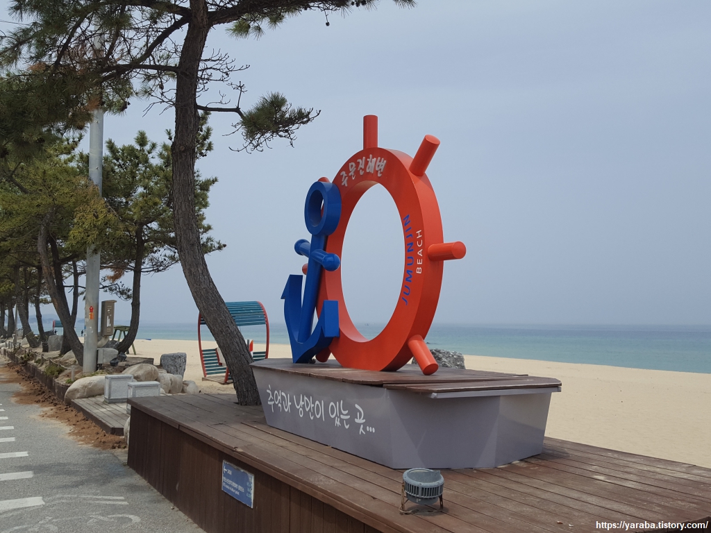 소돌해변과 주문진 해변은 서로 이어져 있는 해변이다. 바다 전망대를 내려와 소돌 해변을 걷는데 인도 바로 옆에 캠핑카를 세워놓고 한창 점심 식사 중인 중년 부부가 있었다. 스쳐가면서 본 그들의 점심 메뉴는 생선회였다. 가볍게 인사를 하면서 지나치는데 드시고 가라고 성화시다. 집에 가야 할 일정도 있고, 생면부지 사람들이 하는 식사 자리에 얼싸구나 하면서 앉을 일은 아니었다. 소리가 들리지 않을 정도로 거리가 상당히 떨어진 상태에서도 오라고 계속 손짓하는 그분들을 보며, 인생 이야기 나누고 싶어 하는구나 하는 그분들의 마음은 공감이 되었다.