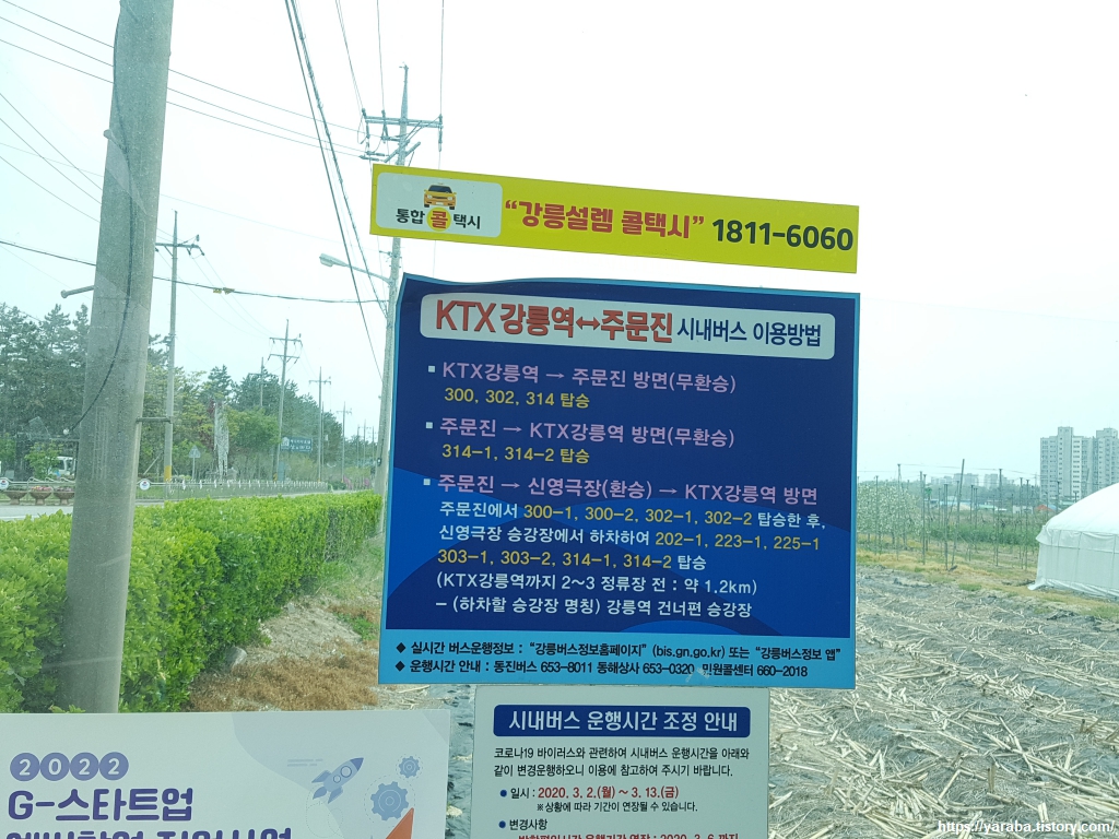 집으로 돌아가는 길. 우리가 택한 방법은 시내버스를 타고 강릉역으로 이동하여 KTX를 타는 것이다. 스탬프 함이 있는 곳에서 해안 반대 방향으로 쭉 나오면 넓은 주차장을 지나서 "주문진 해변" 버스 정류장에서 시내버스를 탈 수 있다. 문제는 강릉역에서 주문진 해변으로 올 때는 직통으로 바로 오는 버스들이 많다. 버스 정류장에 붙어 있는 위의 사진처럼 300, 302, 314번 버스를 타면 환승 없이 주문진 해변에 올 수 있다. 다음 여행 때는 그렇게 41코스를 시작하면 된다. 그런데 같은 버스가 강릉역 방향으로 갈 때는 경로가 달라져서 환승을 하거나, 인근 정류장에서 내려 도보로 이동해야만 한다. 우리는 강릉역에서 약 900미터 떨어져 있는 "롯데캐슬 아파트" 정류장에서 하차하여 천천히 걸어가기로 했다. 시내버스에서 기차표를 예매했는데 시간 여유가 많았다.