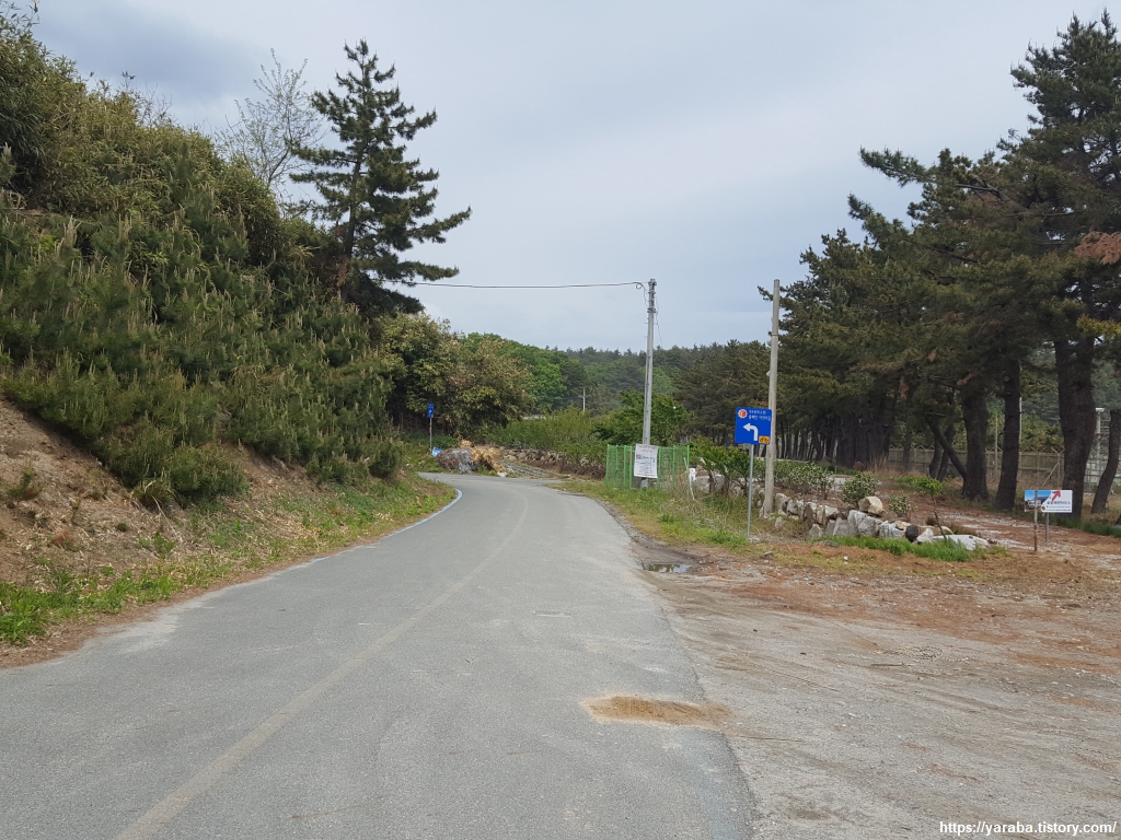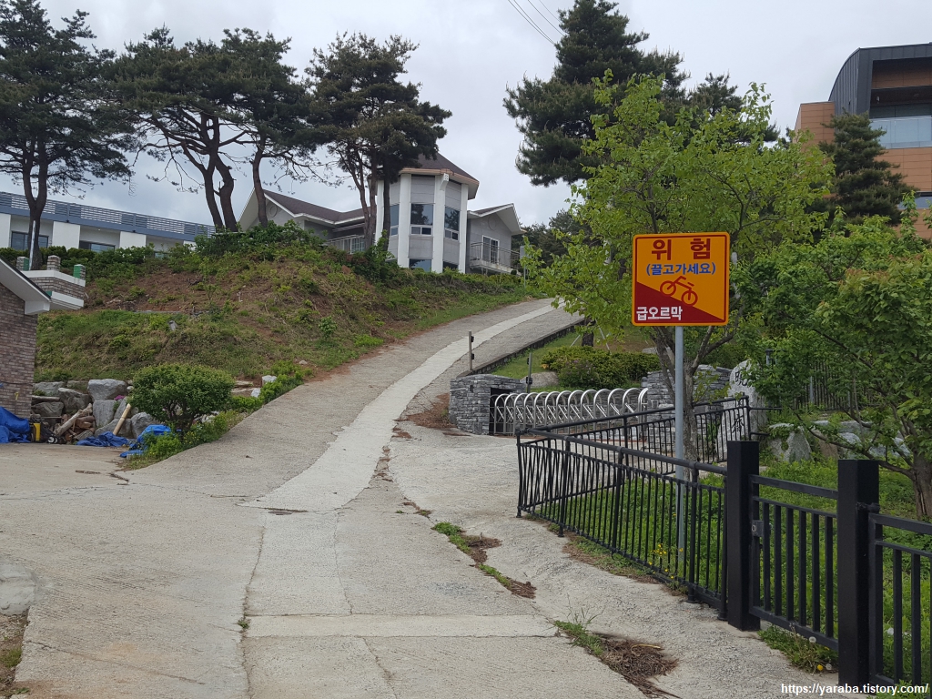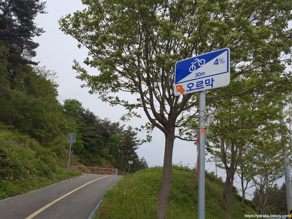 길은 7번 국도로 나가지 않고 국도 직전에서 좌회전하여 오르막 자전거길로 이어간다.