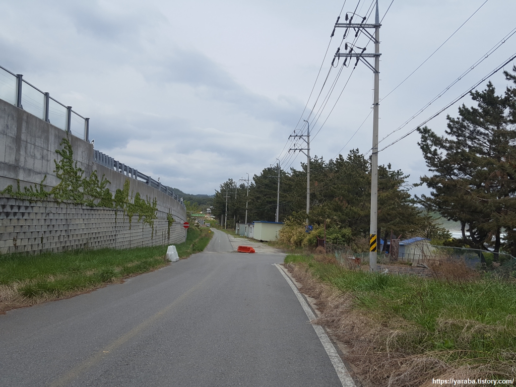 북분리 해변을 지나면 동해안 자전거길과 해파랑길 42코스는 7번 국도 아래의 굴다리를 통과해서 우회전하여 북분리 마을 안쪽 길로 들어선다.