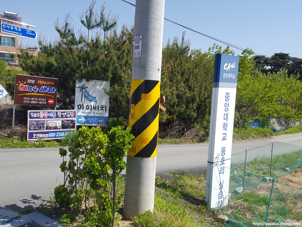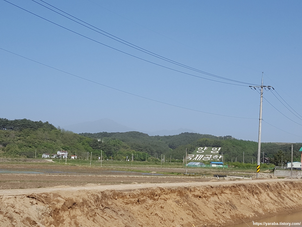 여운포리를 나와 넓은 들판이 있는 상운리로 접어드니 멀리 양양 국제공항이라 표시한 언덕 배기 장식이 눈에 들어온다.