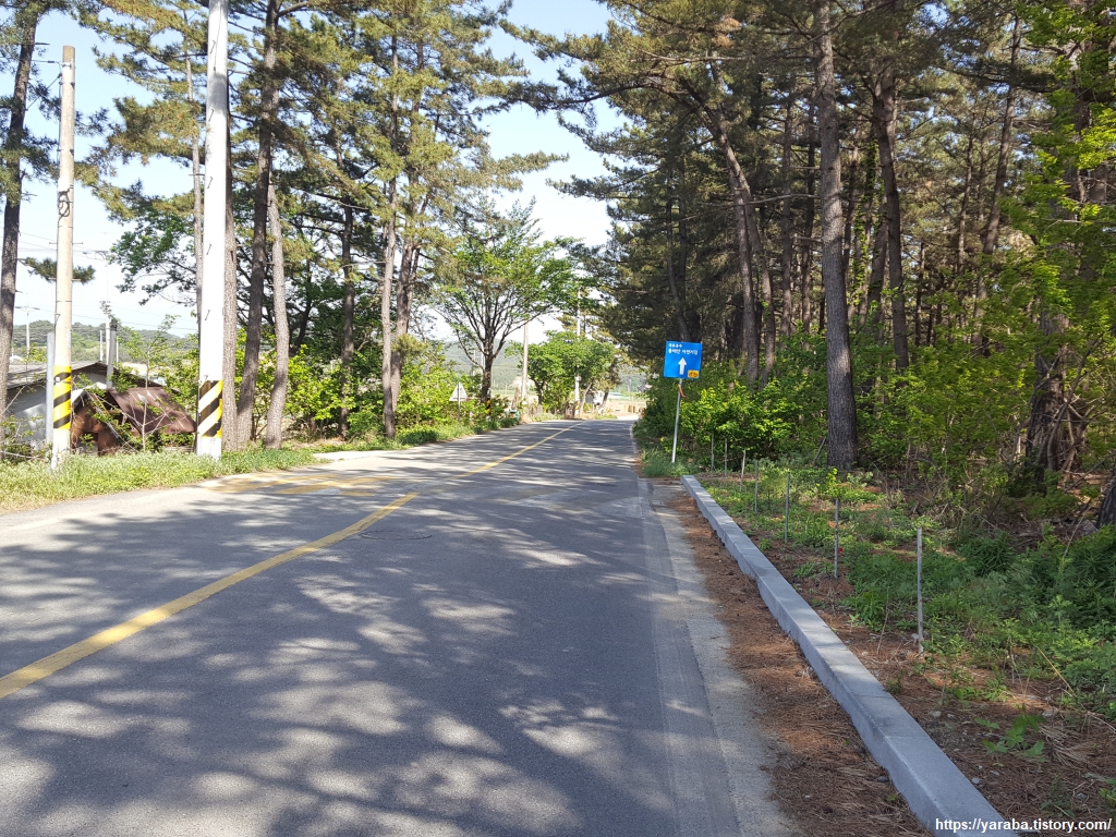 동호리 선사 유적로를 걷다가 해파랑길 표식을 따라 우회전하여 해변을 향해 이동한다.