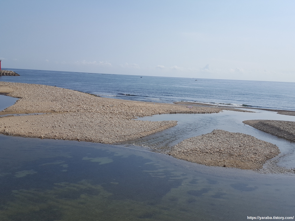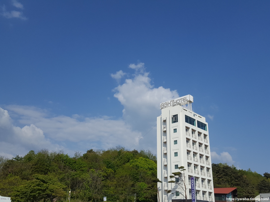 정암 해변은 바로 뒤로 7번 국도가 지나가기 때문에 해변으로 접근하기가 조금 어렵지 않나 싶었는데 졸음 쉼터가 있어 차박 캠핑하는 분들도 상당히 많았다. 우리는 신호등이 있는 횡단보도를 통해 국도를 건너서 에이트 호텔이란 곳에서 하룻밤 묵어 갔다. 평일이라 저렴했다. 이른 시간에 도착해서 넉넉한 휴식 시간을 가질 수 있었다.