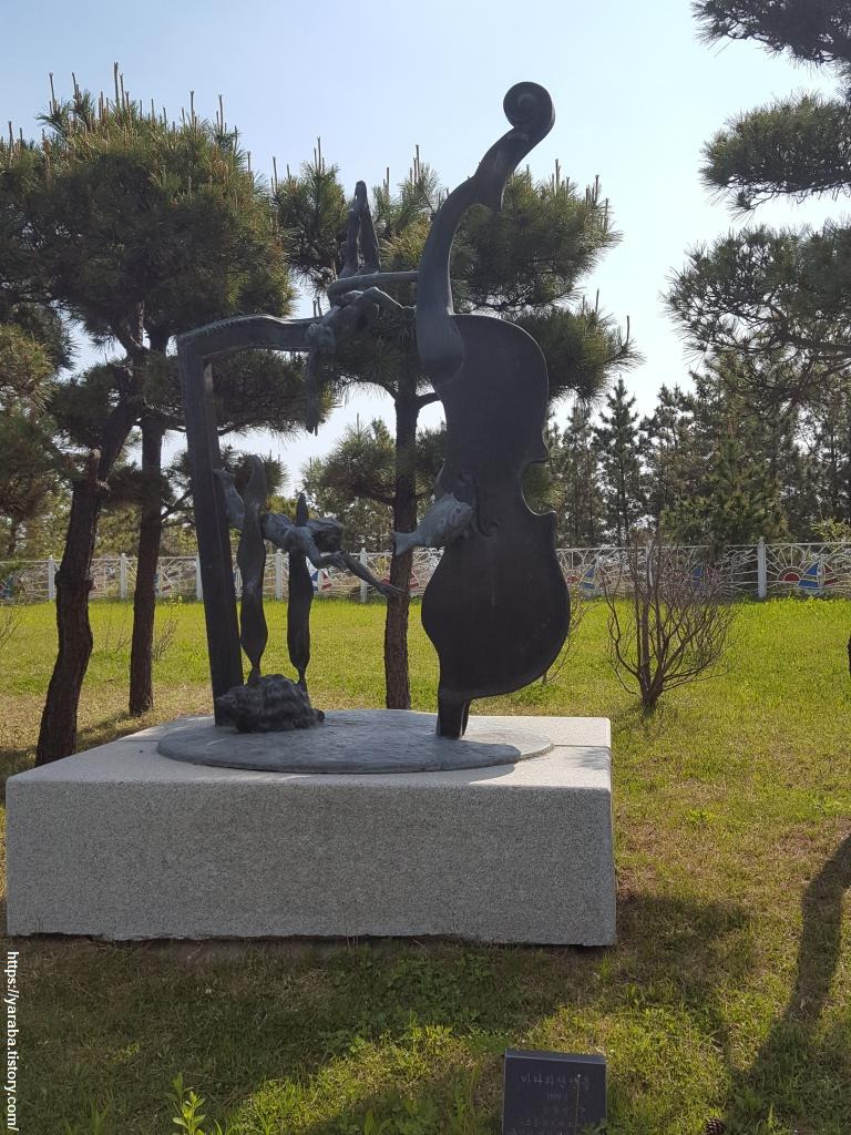 속초 해맞이 공원은 여러 조각 작품을 감상할 수 있는 곳이다. 몇 가지 인상적인 작품들을 남겨 본다. "바다와 연인들"이라는 작품은 바닷속 풍경을 사실적으로 표현하면서도 악기를 포함시킨 멋진 작품이었다.