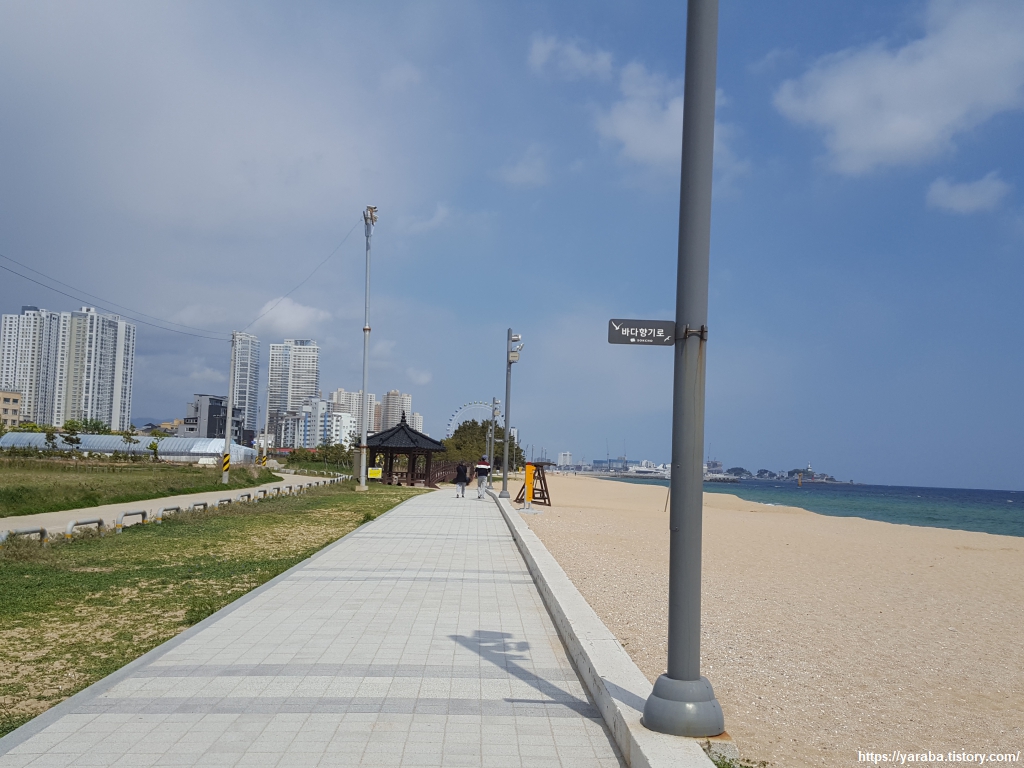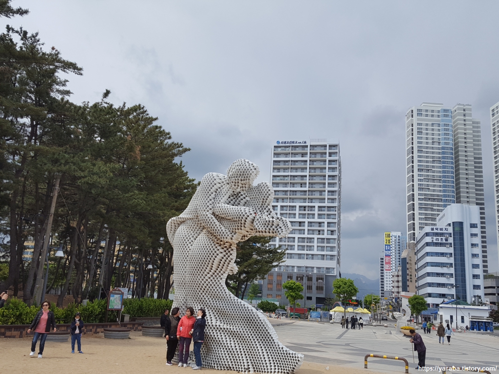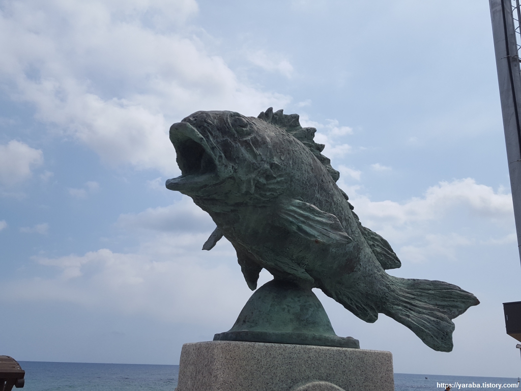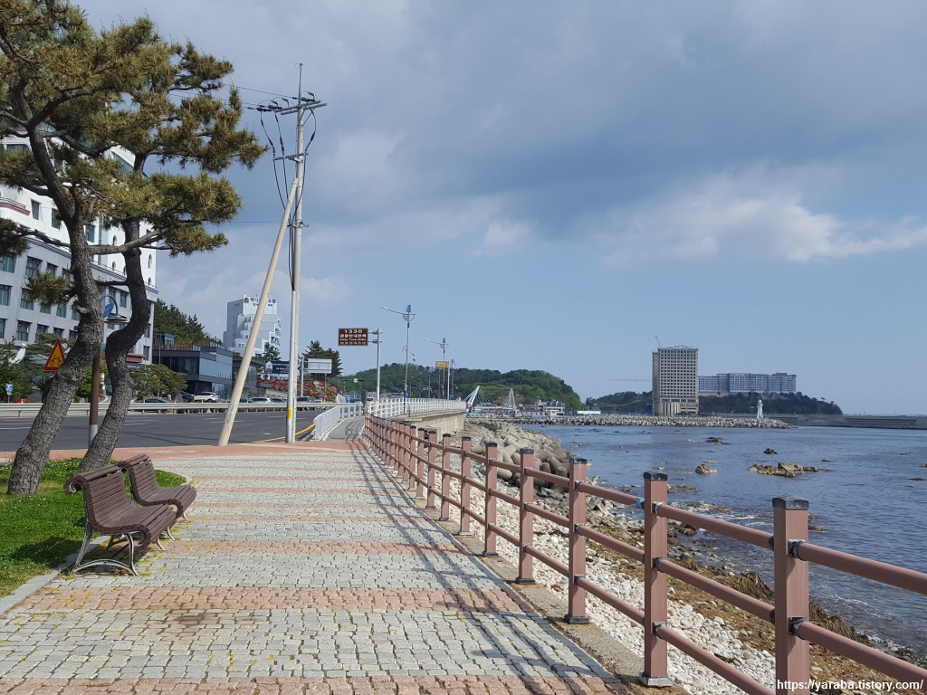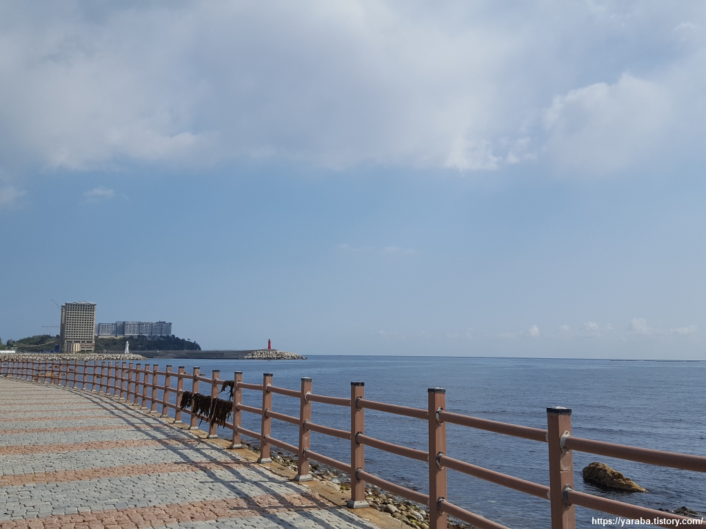 해변에 설치된 인어 연인상을 지나 7번 국도를 따라 대포동 해안길을 이어간다.