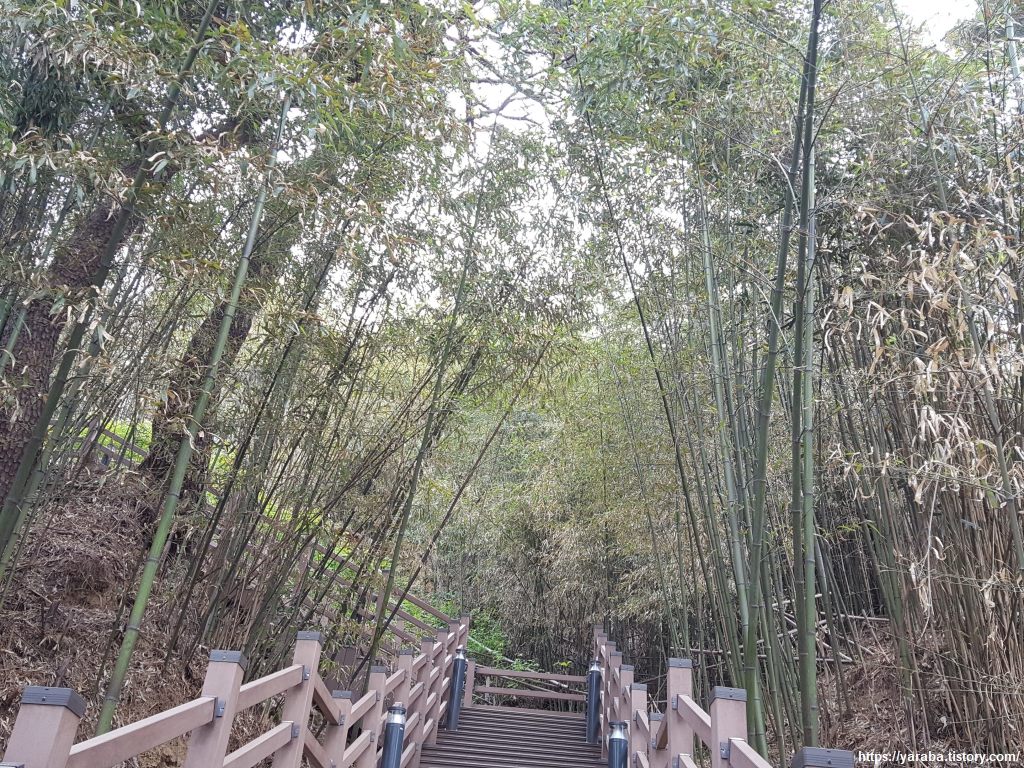 외옹치항 뒤편으로는 의외의 숲길이 펼쳐진다. 울창한 대나무 숲 사이로 이어지는 계단길, 헉헉대며 오르기는 하지만 멋진 길이었다.