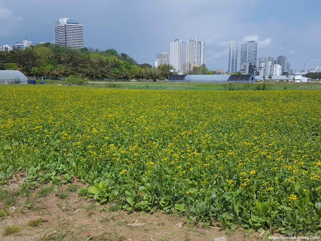 5월이면 유채가 남아 있을 시기가 아닌데 노란 꽃을 피운 것은 배추나 무 꽃일까 싶었다. 그런데, 알고 보니 꽃이 늦게 피는 유채였다. 품종에 따라서 일반적인 품종은 4월 초에서 4월 중순까지 꽃을 볼 수 있지만, 탐라 유채와 내한 유채라는 품종은 4월 중순에서 5월 초까지 꽃의 절정이라고 한다. 경관용으로 유채를 심는 곳은 두 가지 품종을 섞어서 씨를 뿌려 오랜 기간 꽃을 볼 수 있게 한다고 한다.