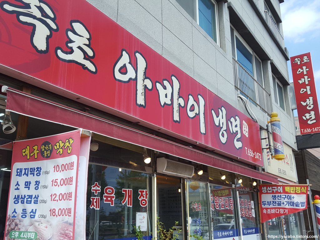 생선구이를 먹지는 못했지만 먹거리 천국을 그냥 지나칠 수는 없었다. 가는 길에 속초 아바이 냉면은 과연 무엇일까? 하는 호기심에 냉면집에서 냉면으로 점심 식사를 해결했다. 아바이 냉면은 함흥식 냉면이었다. 매콤하니 맛있는 점심 식사였다.