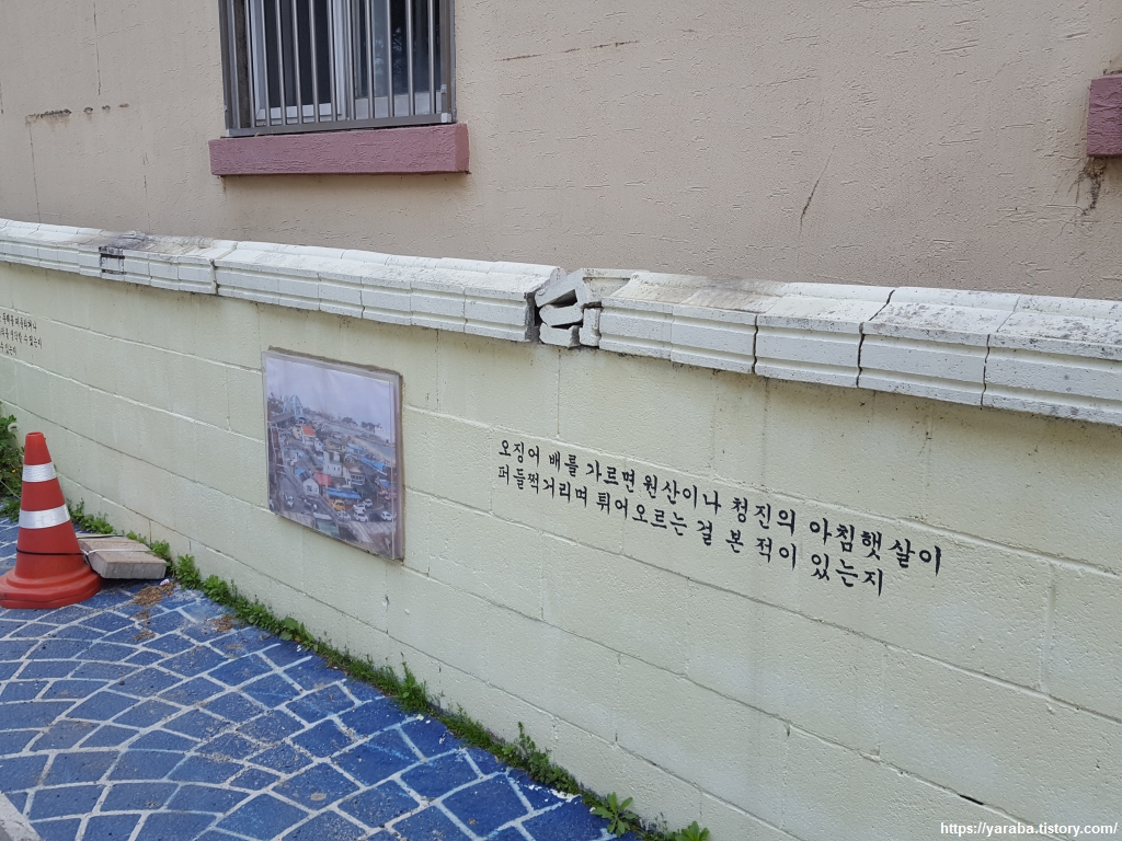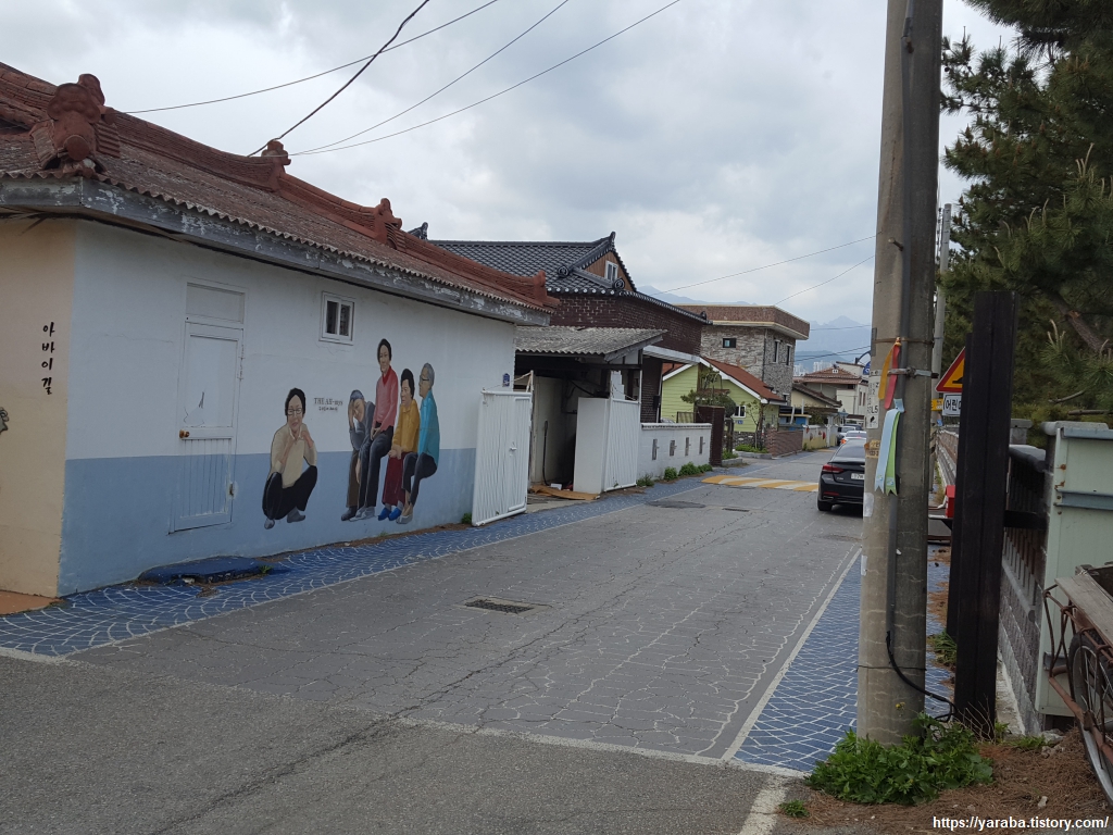 해변길을 걷다가 청호 초등학교 인근에서 좌회전하여 청호동 골목길로 들어간다. 동네 어르신들을 그려놓은 벽화 옆에 아바이 길이라 적혀있다.