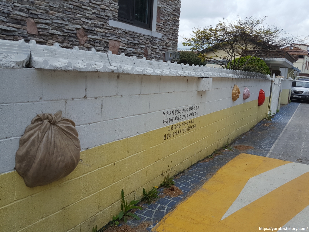 시멘트 블록 담벼락에 그려진 벽화들은 그냥 스쳐 지나갈 수 없는 사연들이 담겨 있었다. 멈추어 섰다가 걷기를 반복한다. 무슨 긴 말이 필요할까 "철조망이 아니야"하는 짧은 말과 표정에서 애끓는 마음이 전해진다.