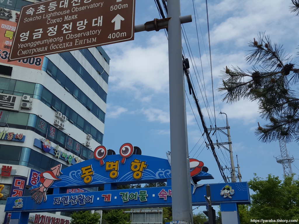 속초항을 따라 걷는 길은 속초 시청이 자리한 중앙동을 지나 동명동으로 넘어간다.