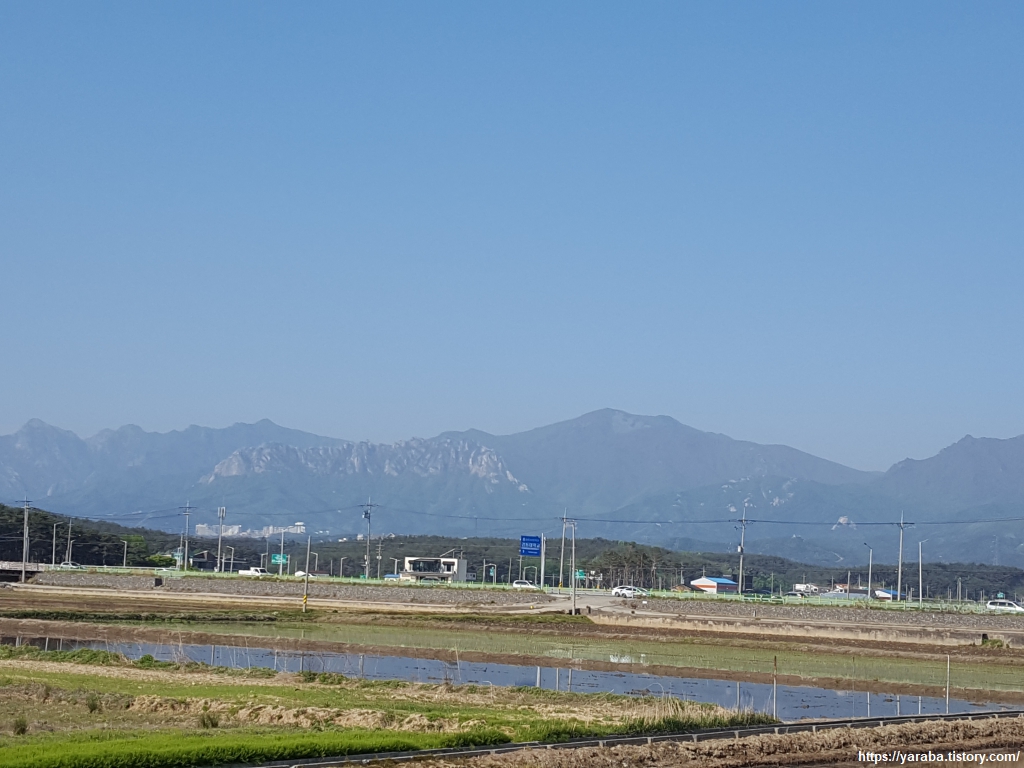 멀리 설악산 울산 바위가 먼 거리에서도 그 위용을 뽐낸다.