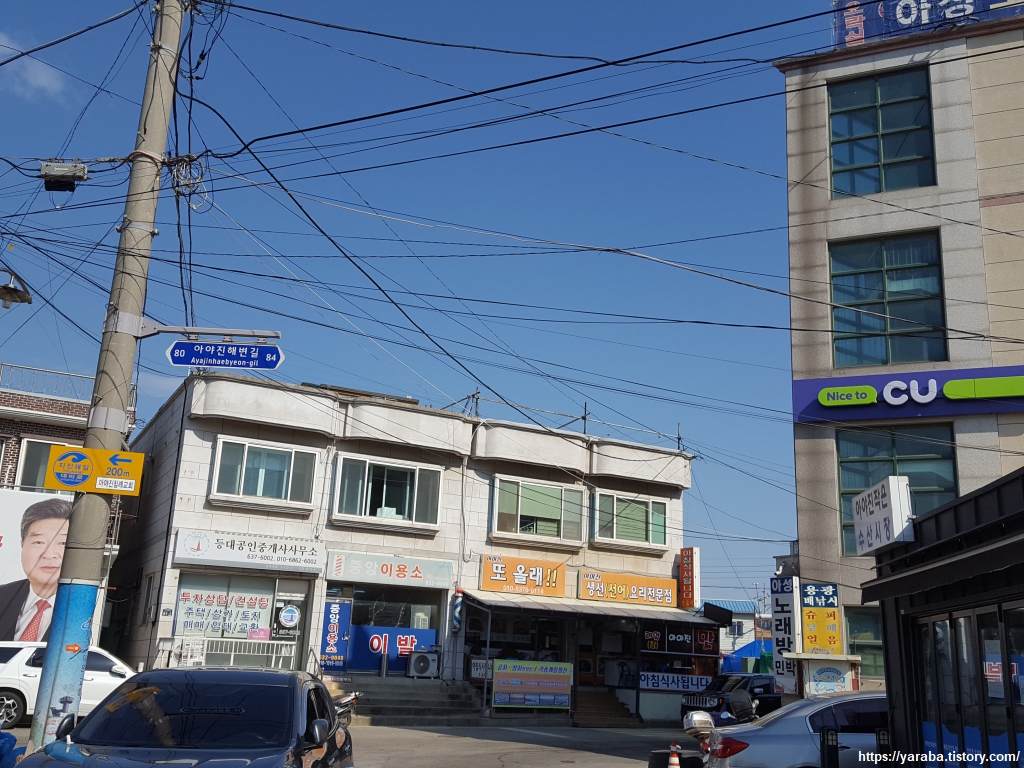 아야진 연승 협회라 해서 지역의 무형 문화재와 관련한 협회인가? 하는 무식한 추측을 했었다. 연승은 알고 보니 주낙을 의미하는 것이었다. 긴 줄에 여러 개의 낚시 바늘을 달아서 고기를 잡는 어업이다. 연승 협회이니 주낙으로 고기를 잡는 어민들의 협회였던 것이다. 아야진 항은 지도에서 보면 항구가 하트 모양이다.