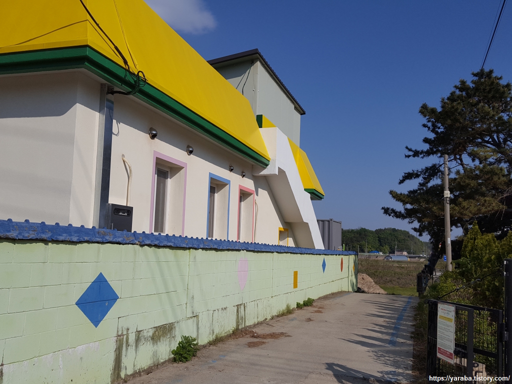빨주노초파남보 무지갯빛으로 장식한 아야진 해변이다.