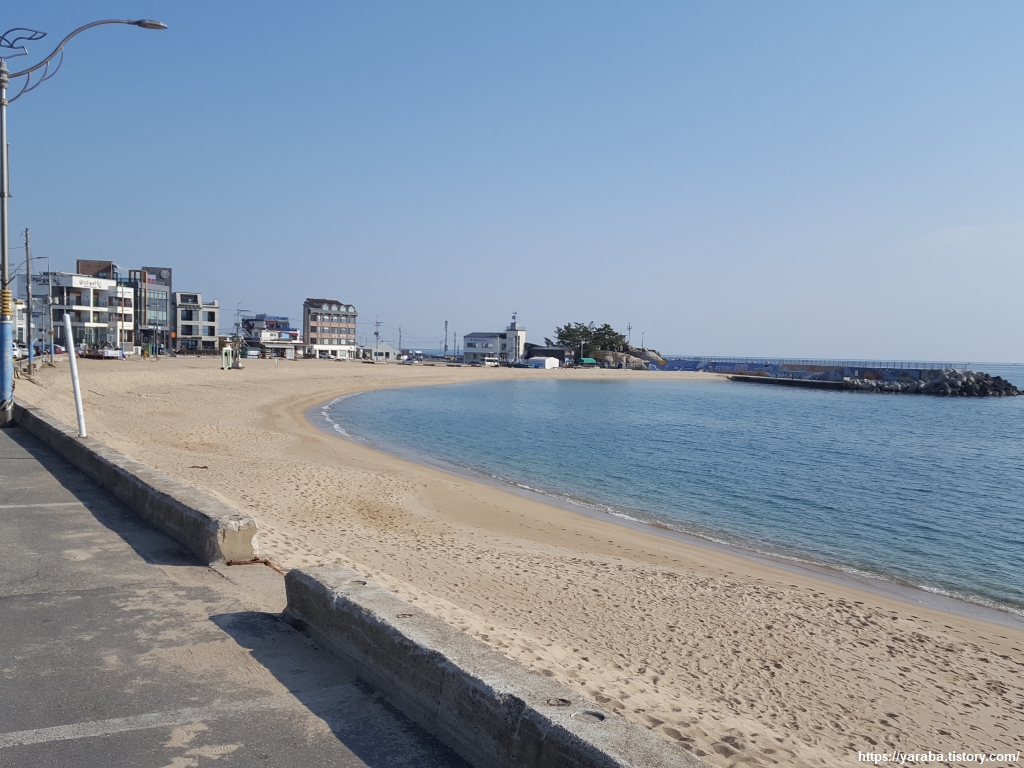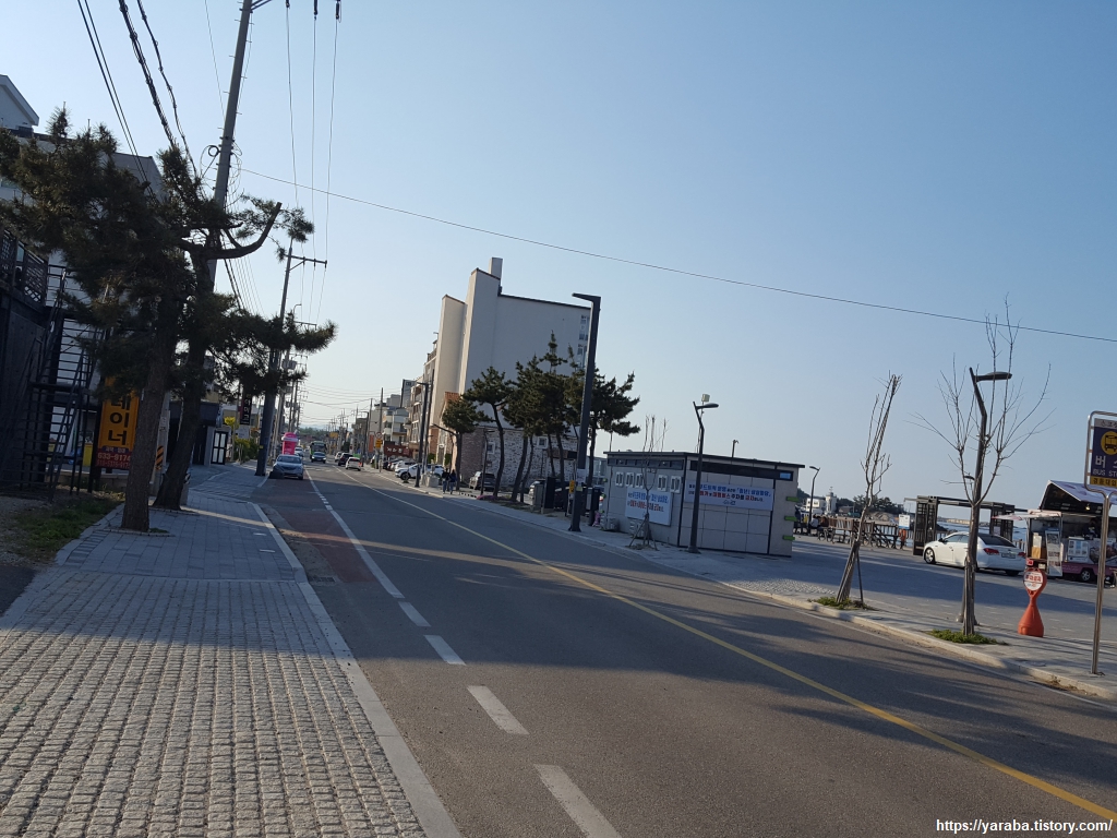항구를 돌아 아야진 해변으로 나간다. 오전 9시를 바라보는 평일 아침, 아야진항 항구 옆 버스 정류장에는 시내로 나가려는 마을분들로 북적였다. 일상에 바쁜 사람들 앞을 배낭을 메고 지날 때면 한편으로는 미안한 마음도 들고, 다른 한편으로는 이런 여유를 가질 수 있다는 것 자체로 감사한 마음이다.